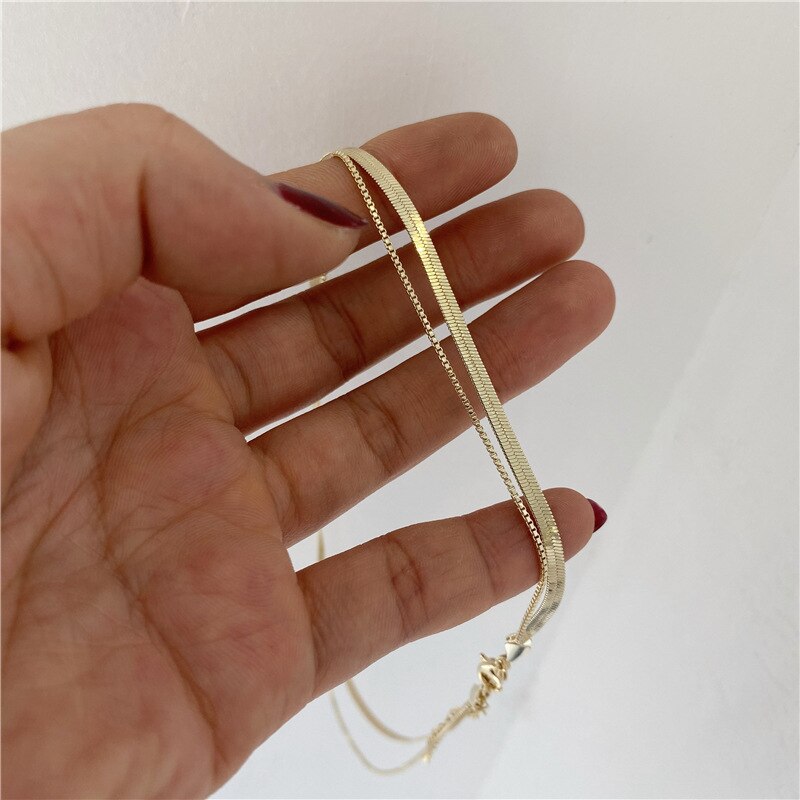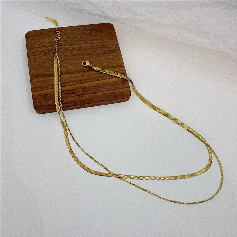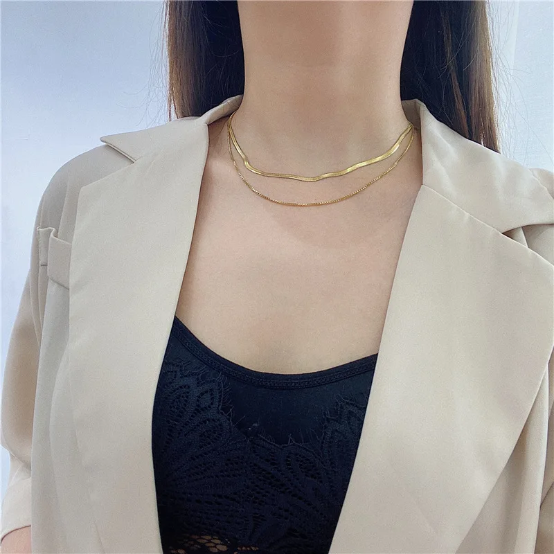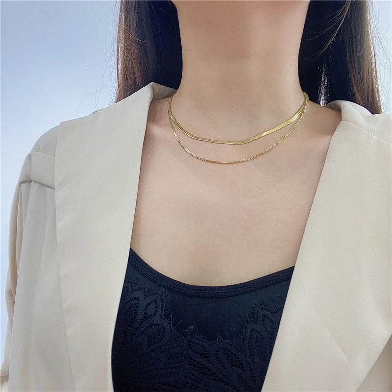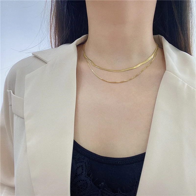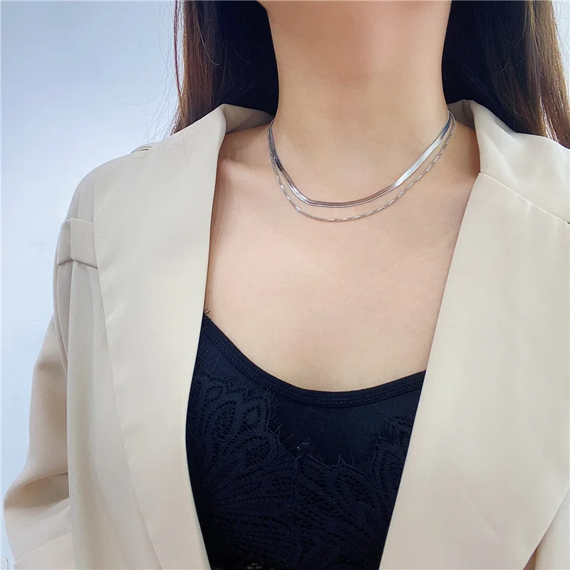 Trendy Titanium Steel Hip Hop Simple Short Choker Necklace Double Snake Bone Chain Non-Fading Necklace