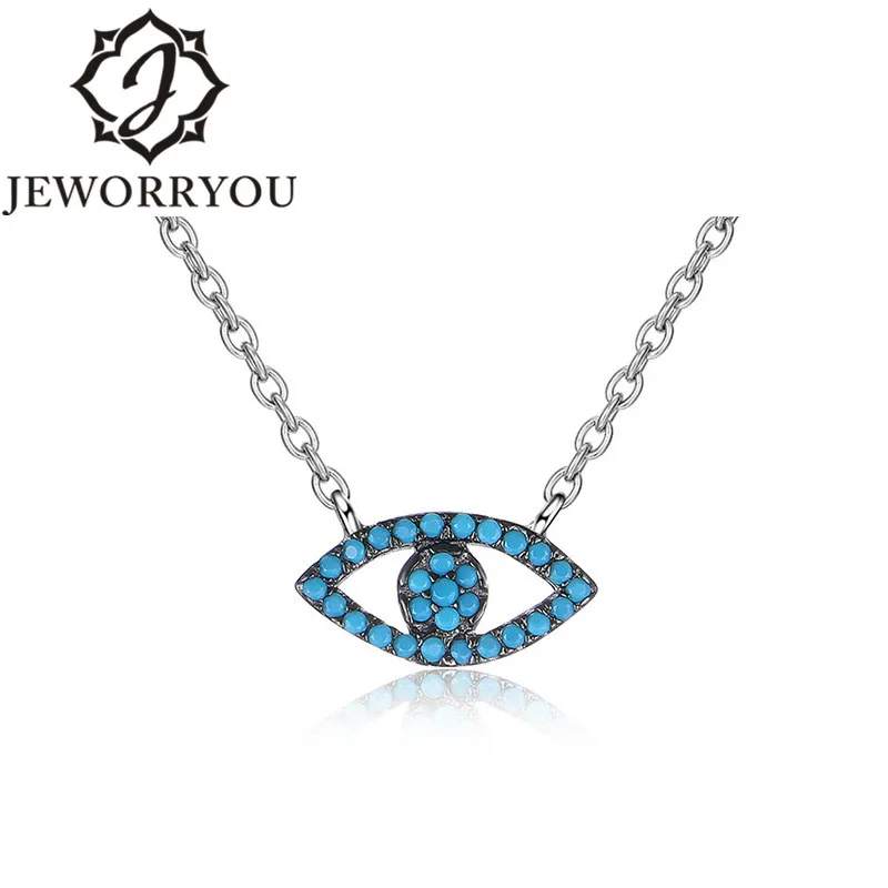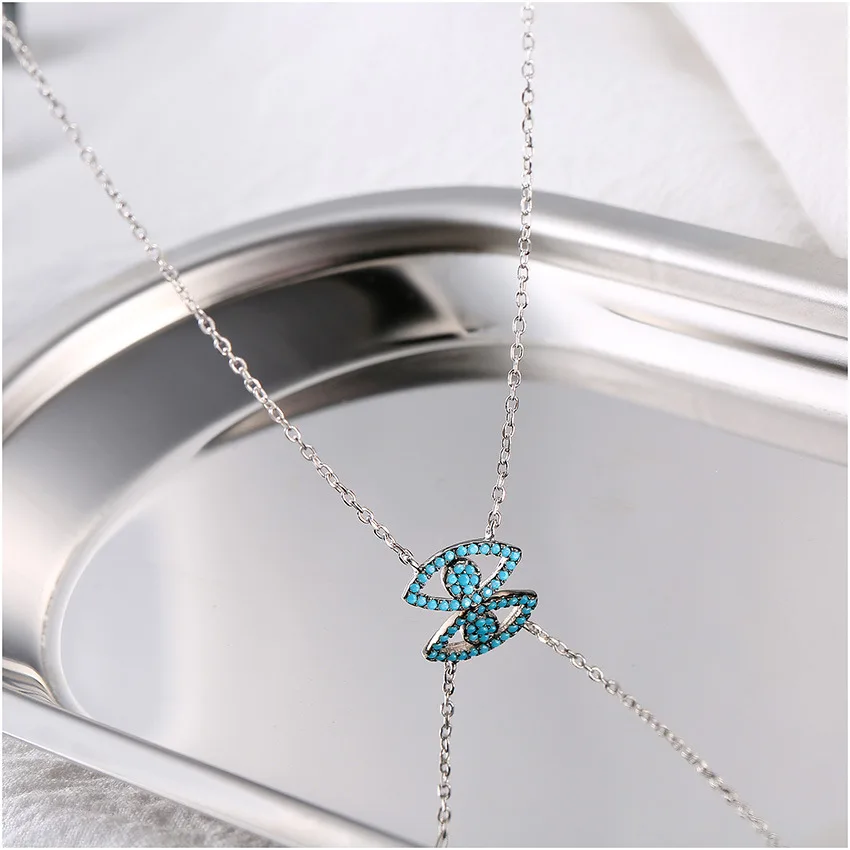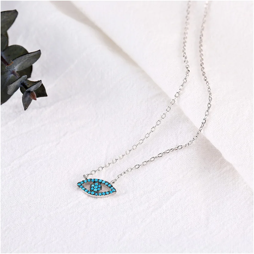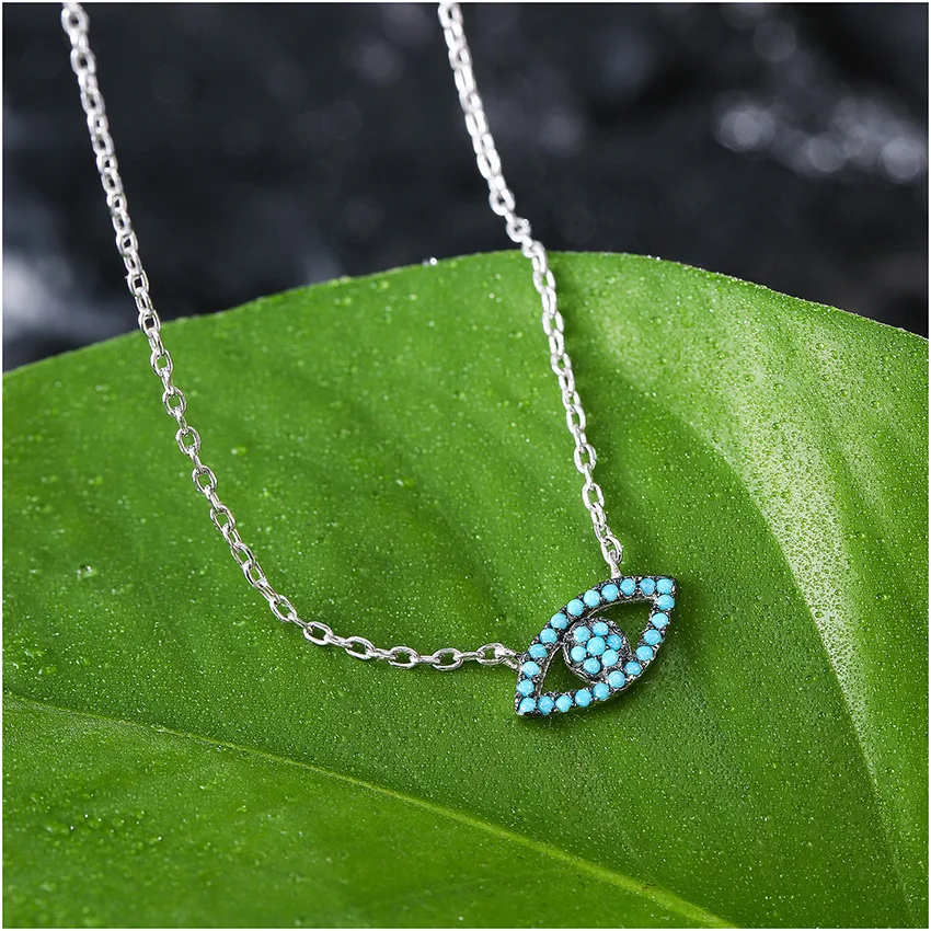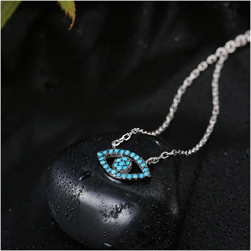Turkish Necklace Choker Blue Vintage Chain Necklace Simple 925 Silver Pendant Necklace Women