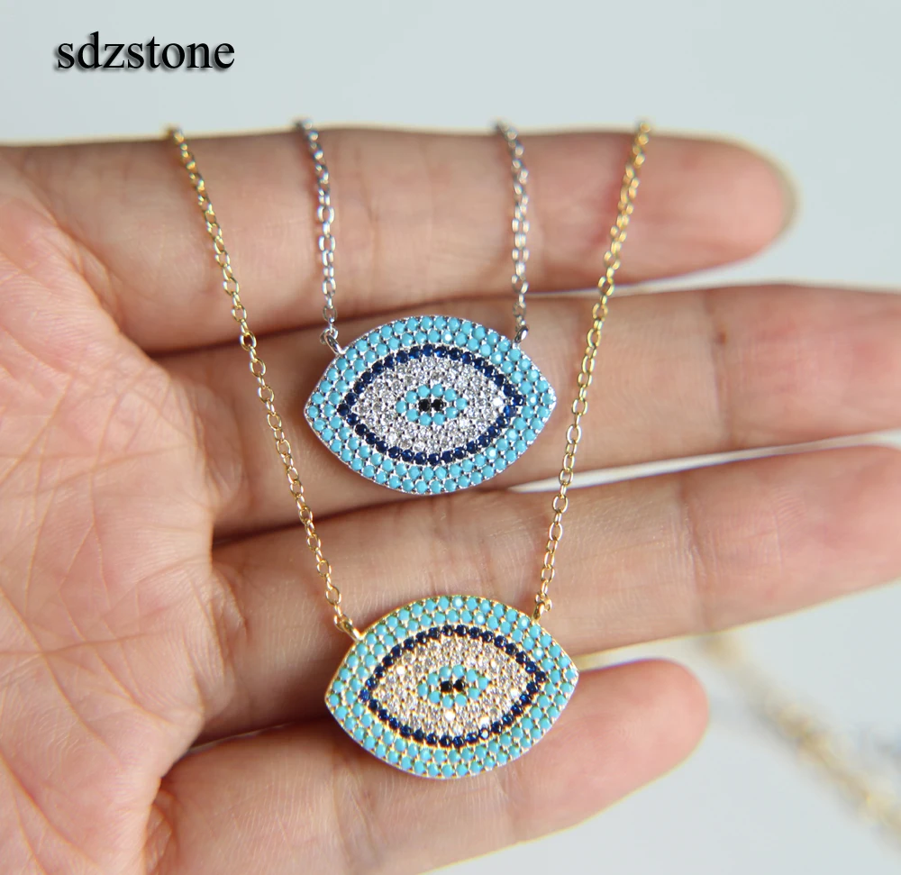 Turkish Style fine 925 silver Necklace for Women Long 18 Chain Crystal turquoises stone Eyes Necklaces & Pendants