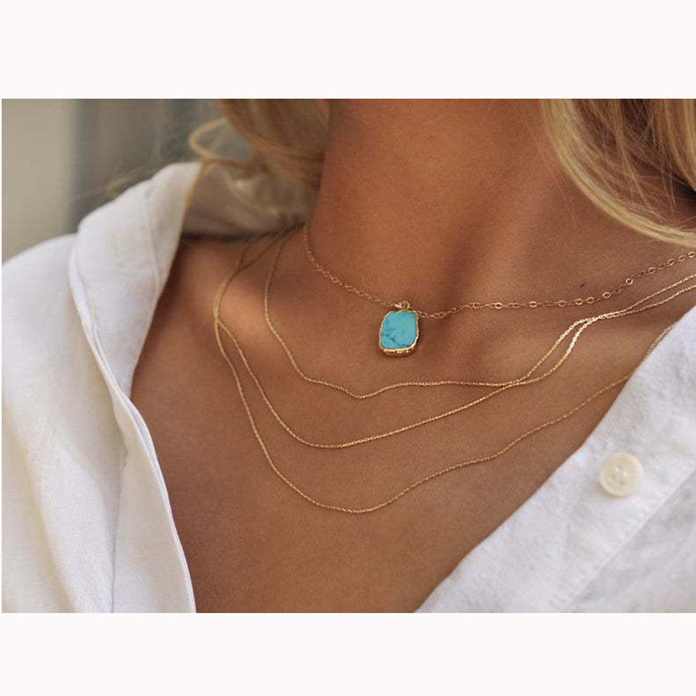 Turquoises Necklace Gold Layering Gem stone Necklace Gift for Mom Birthday Gift For Her Dainty Elegant Chain Unique Girlfriend