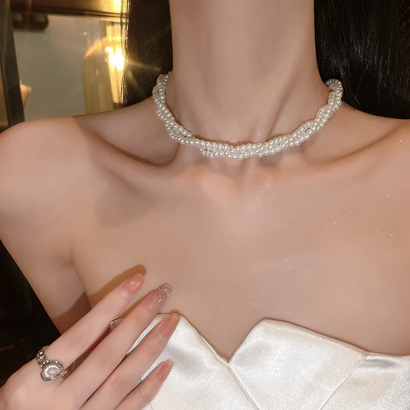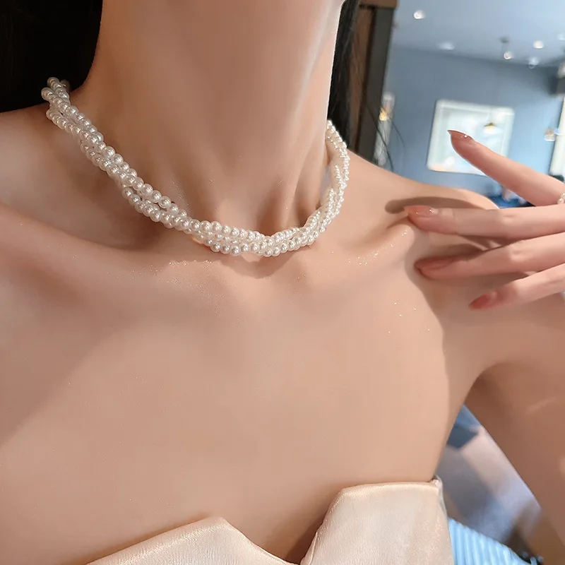 Twining Vintage Pearl Necklaces For Women Trendy French Romantic Style Wedding Jewelry Personality Irregular Clavicle Chain