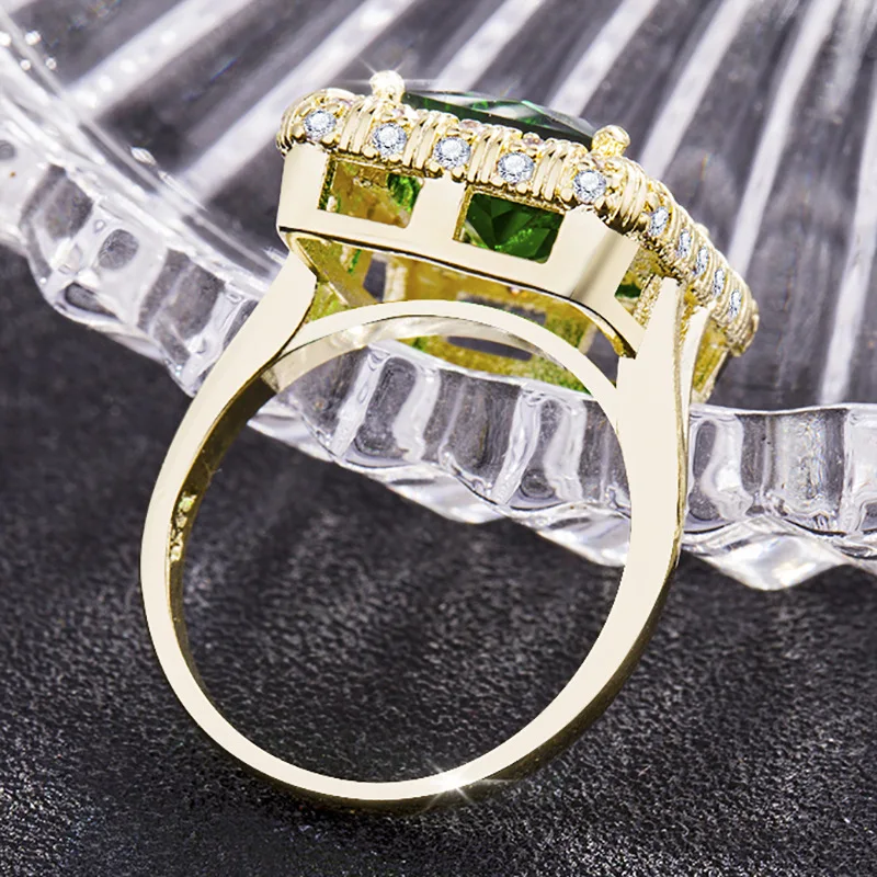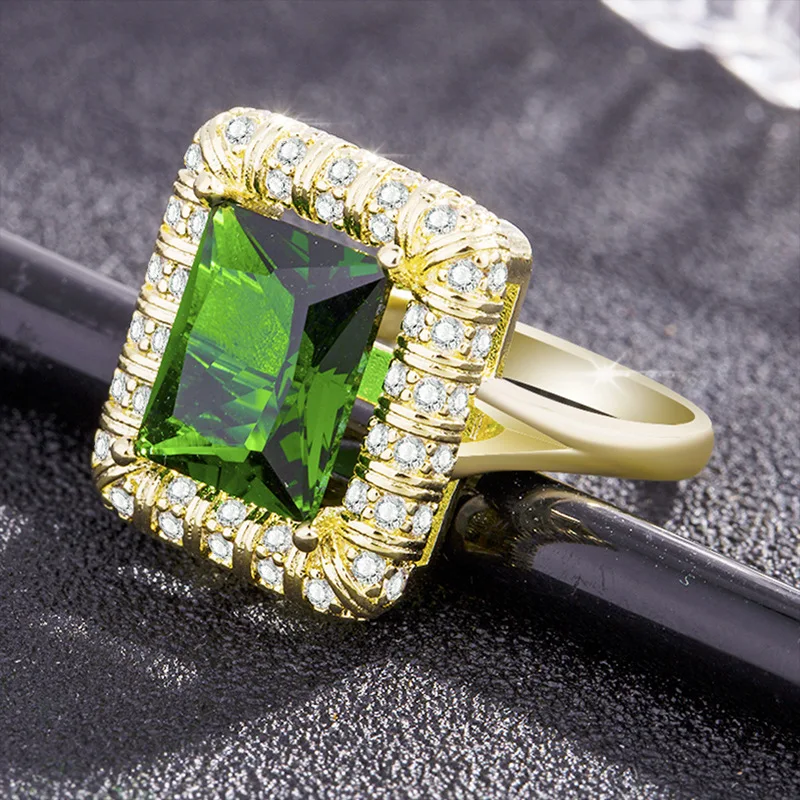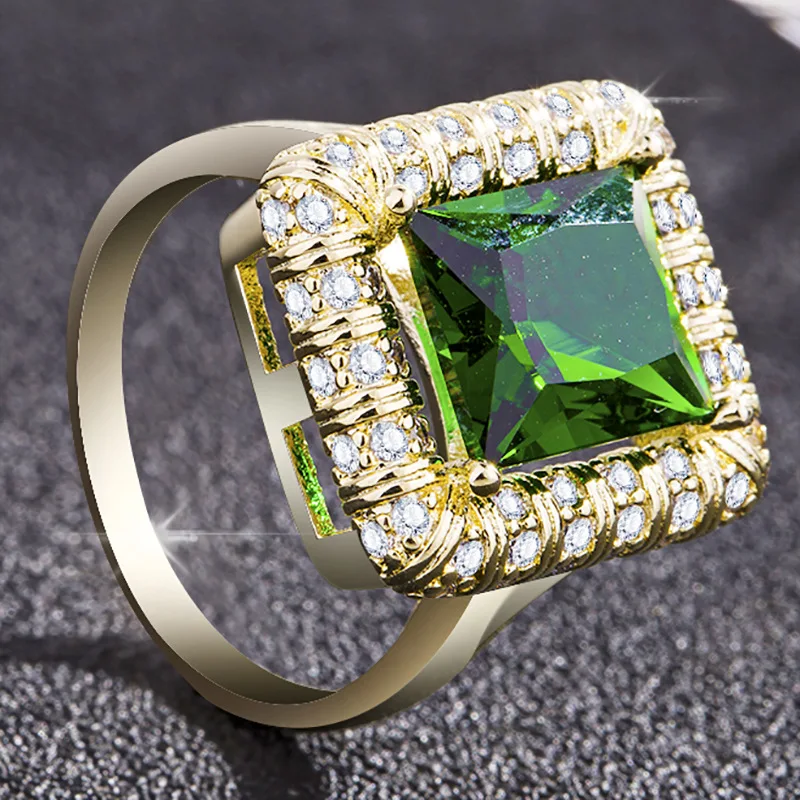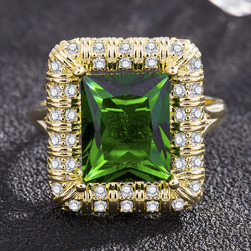 TYPE JEWELRY exaggerated fashion ring girl,red green crystal zirconium retro engagement ring Grandmother Emerald Ring pentagram