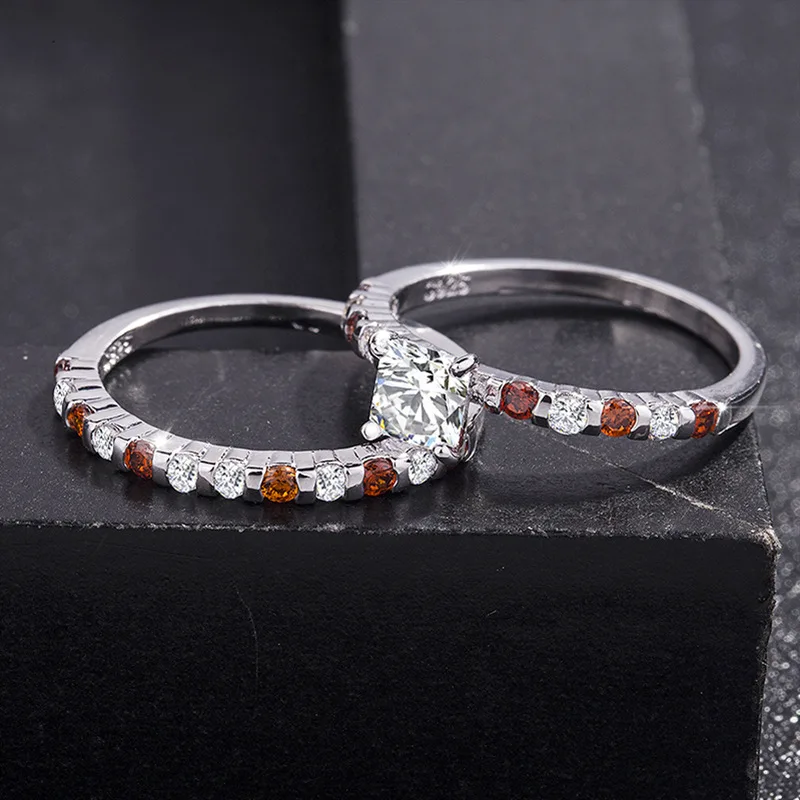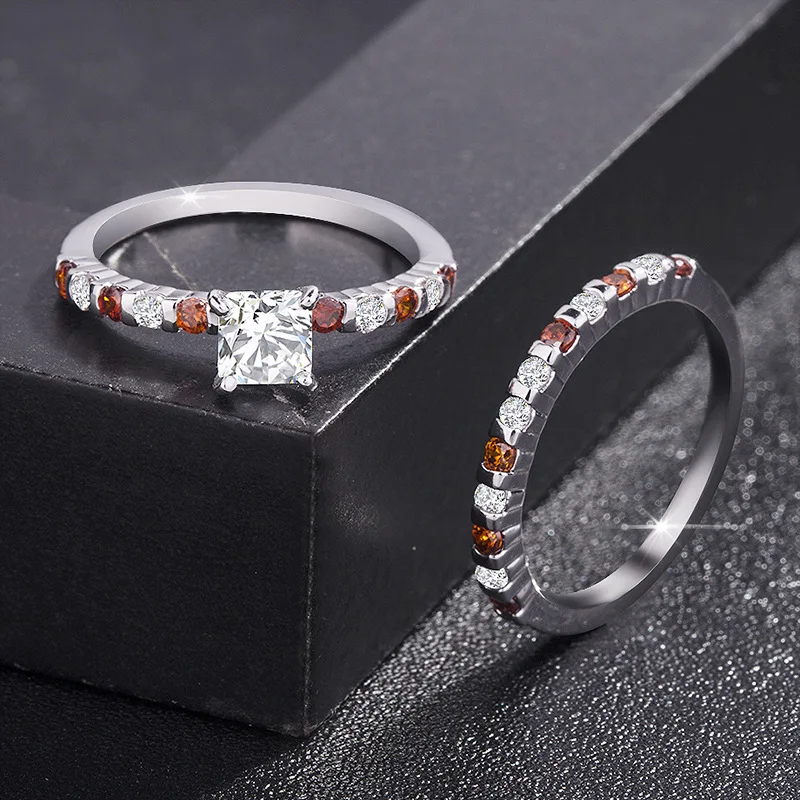TYPE JEWELRY female couple set up a double ring micro zircon ruby ring, engagement ring.white crystal gemstone ring