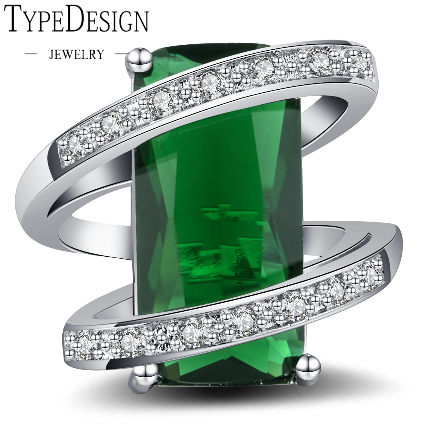 TYPE JEWELRY925 Silver Fashion long green emerald zircon simulation, tourmaline emerald female ring, ball ring, birthd gift