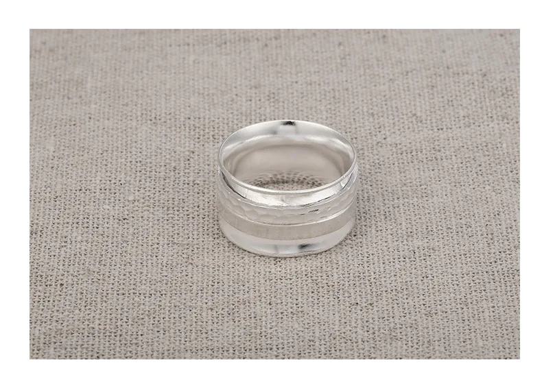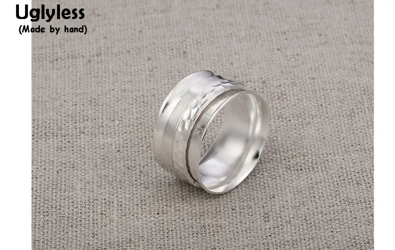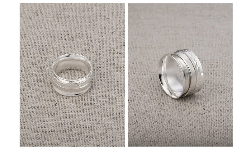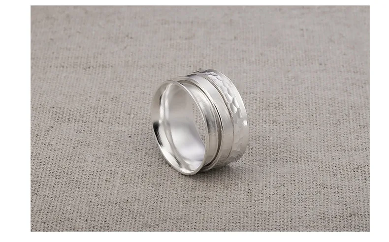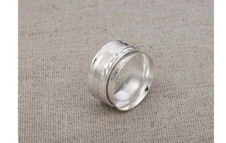 Genuine S 990 Silver Women Fine Jewelry Handmade Knocking Face Wide Finger Ring Simple Ethnic Rings Personalized Bijoux