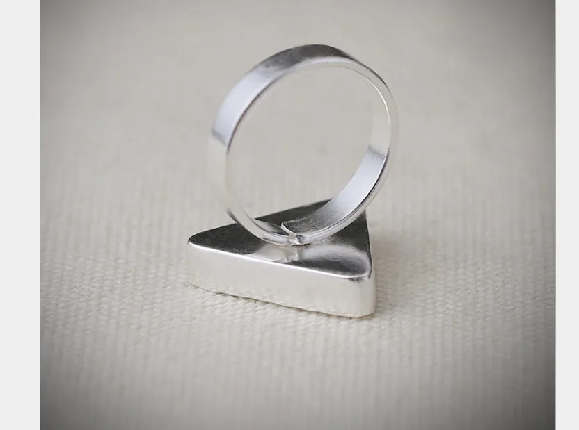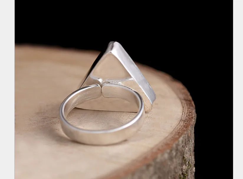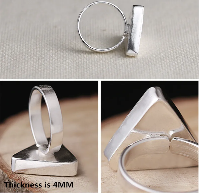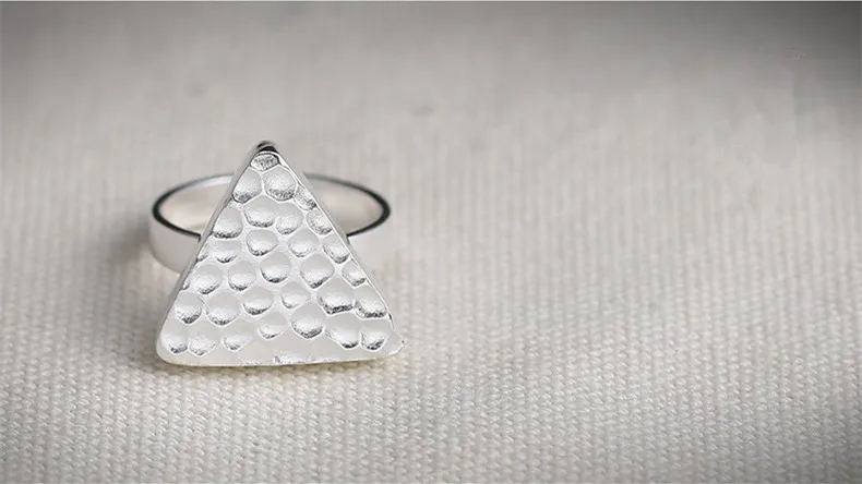 Genuine S925 Sterling Silver Triangle Rings Women Co Geometric Finger Ring Handmade Knocking Face Personalized Bijoux