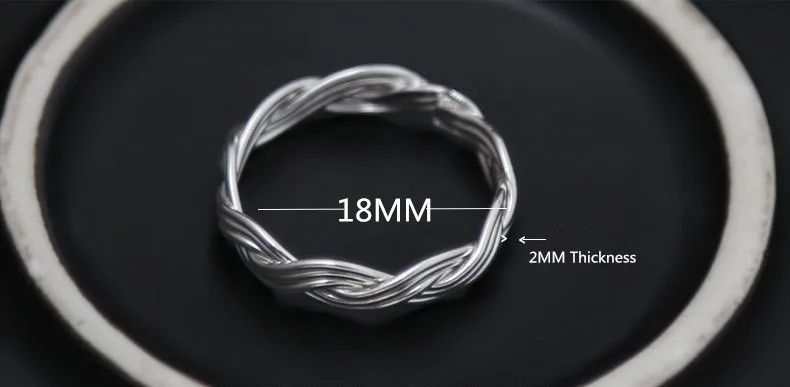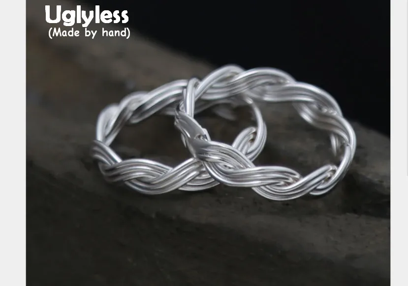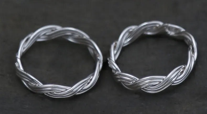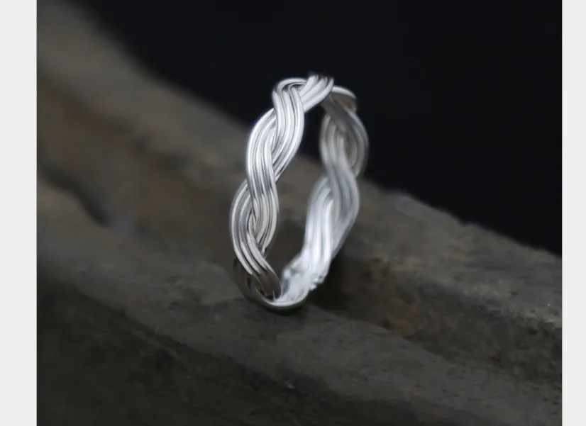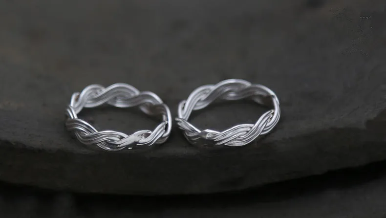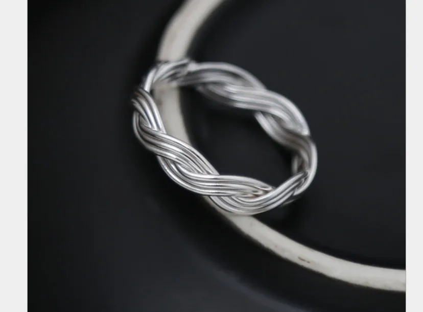 Genuine S990 Silver Handmade Knitted Twist Rings for Couples Exotic Weave Texture Close Ring Vintage Ethnic Fine Bijoux