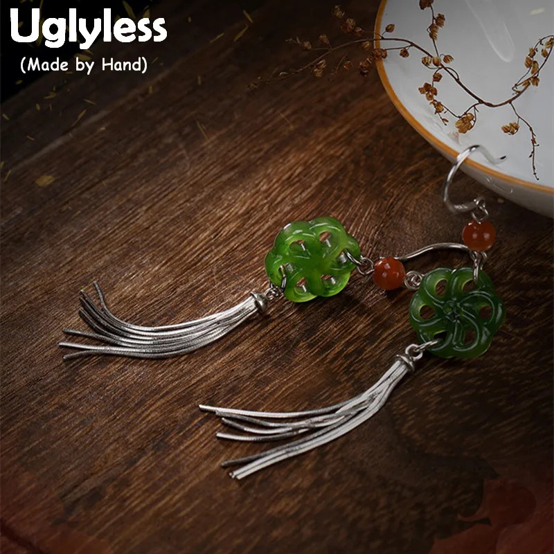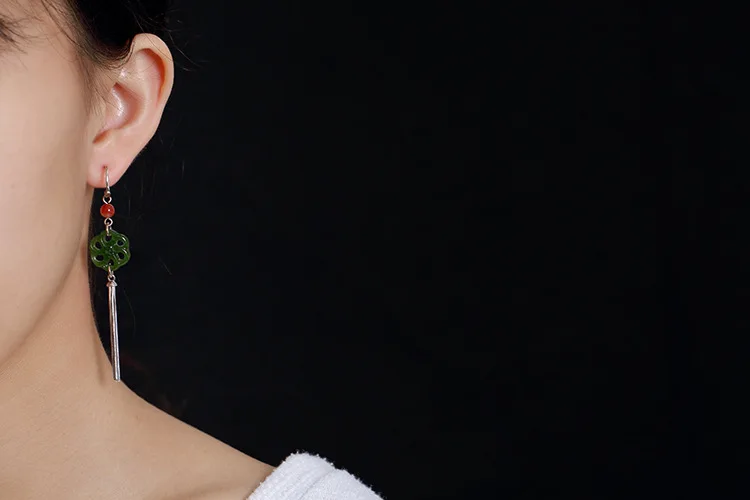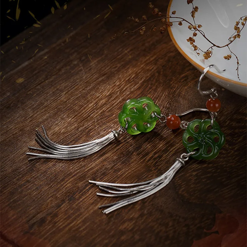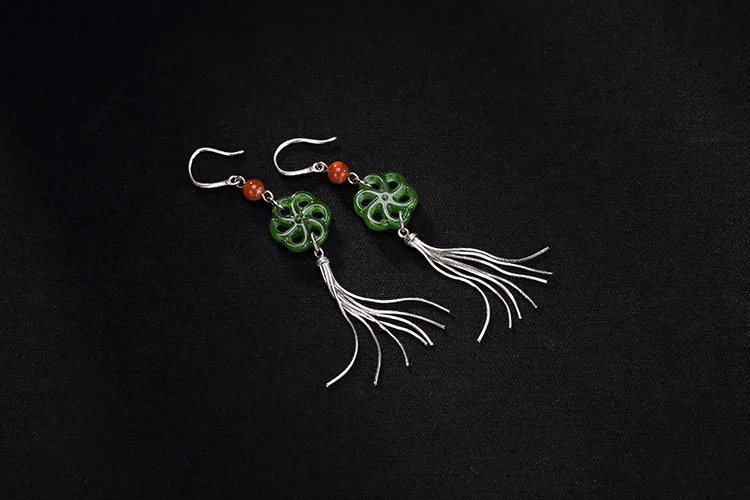 Real 925 Sterling Silver Natural Jade Plum Flower Women Earrings Ethnic Tassel Brincos Beads Fine Bijoux Jasper Jewelry