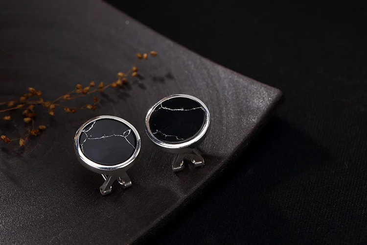Real 925 Sterling Silver Natural Turquoise Round Stud Earrings Fashion Vintage Women Ethnic Brincos Bijoux Fine Jewelry