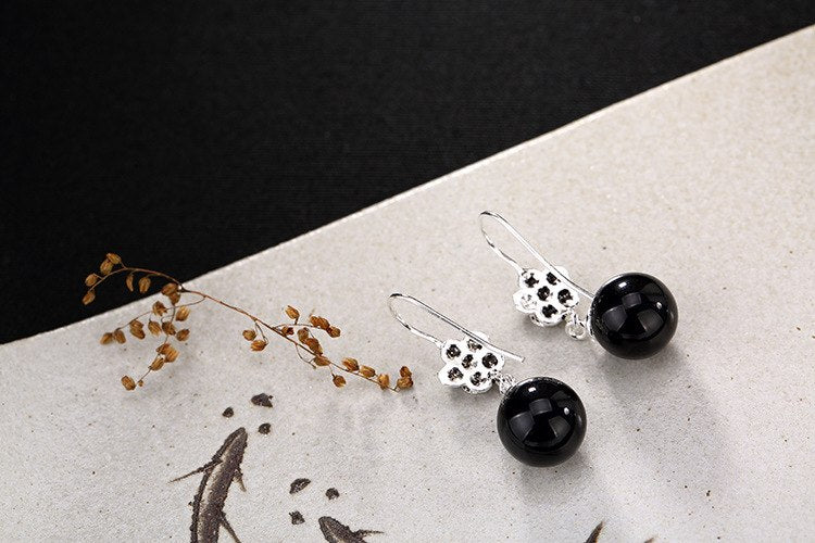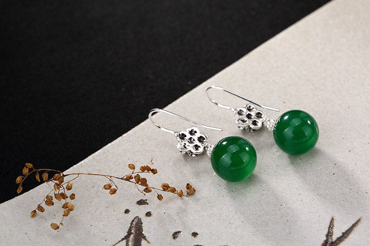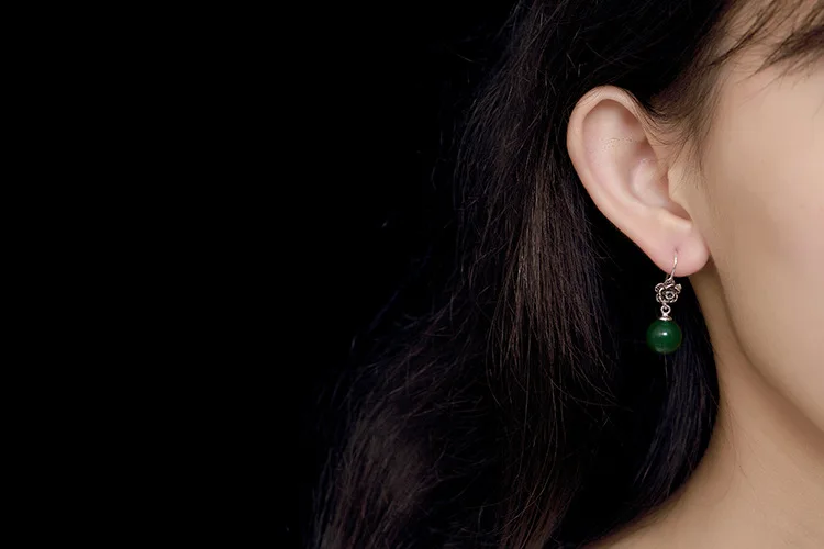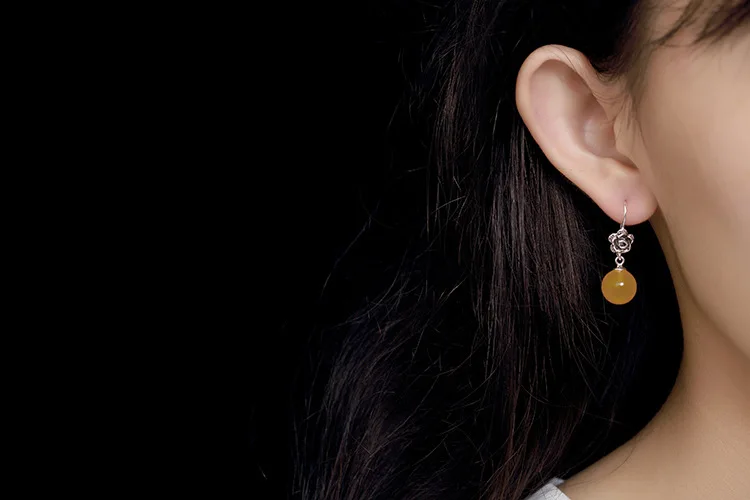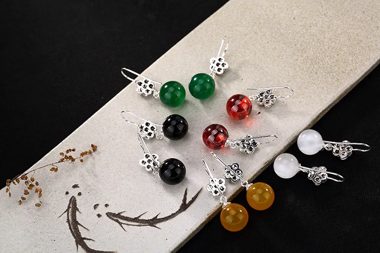Real 925 Sterling Silver Nature Chalcedony Women Dangle Balls Earrings Handmade Rose Brincos Fine Jewelry Ethnic Bijoux