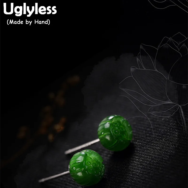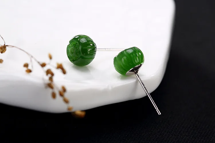 Real 925 Sterling Silver Nature Green Jade Lotus Stud Earrings Women Buddhism Flower Brincos Bijoux Jasper Fine Jewelry
