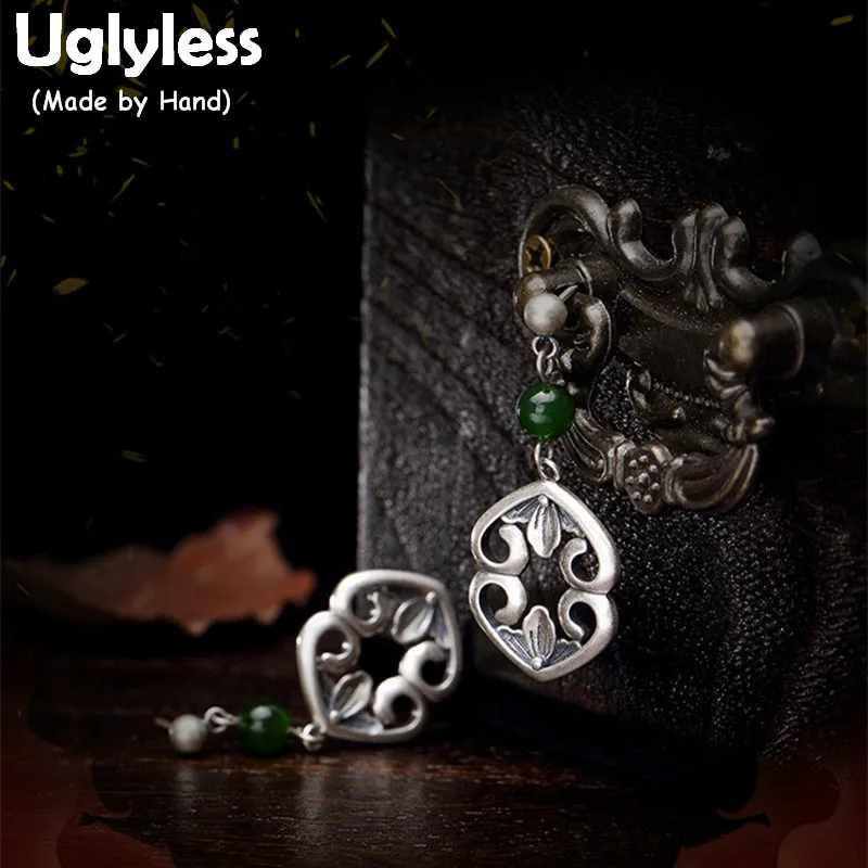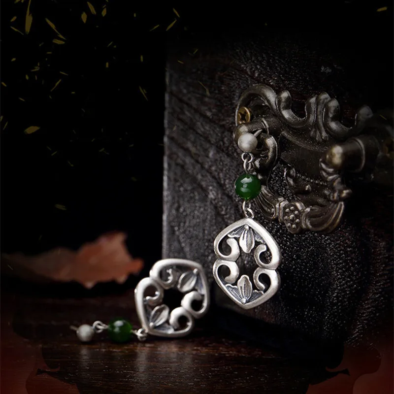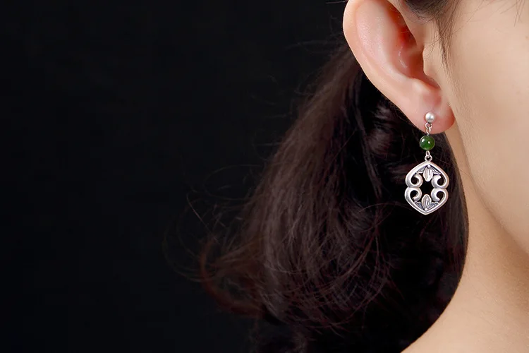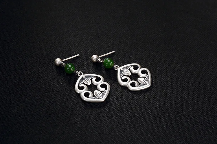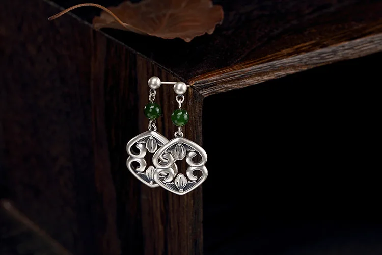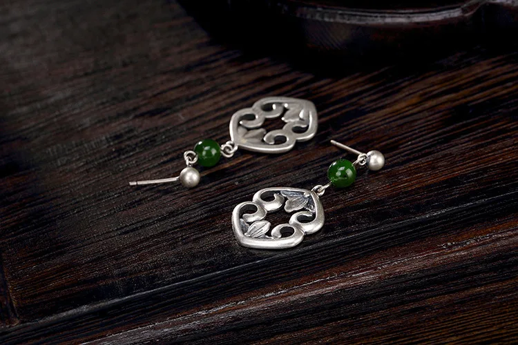 Real 925 Sterling Silver Nature Jasper Beads Dangle Earrings Vintage Totem Patterns Brincos Jewelry Women Ethnic Bijoux