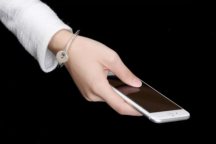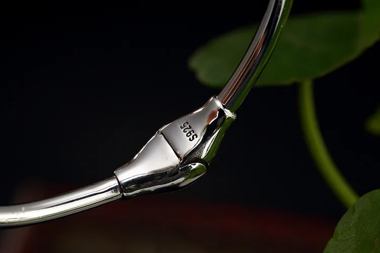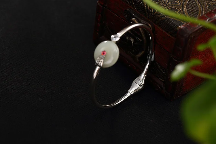 Real S 925 Sterling Silver Bangle Simple Elegant Women Jade Button Bangles Ethnic Handmade Fine Jewelry Opening Bijoux