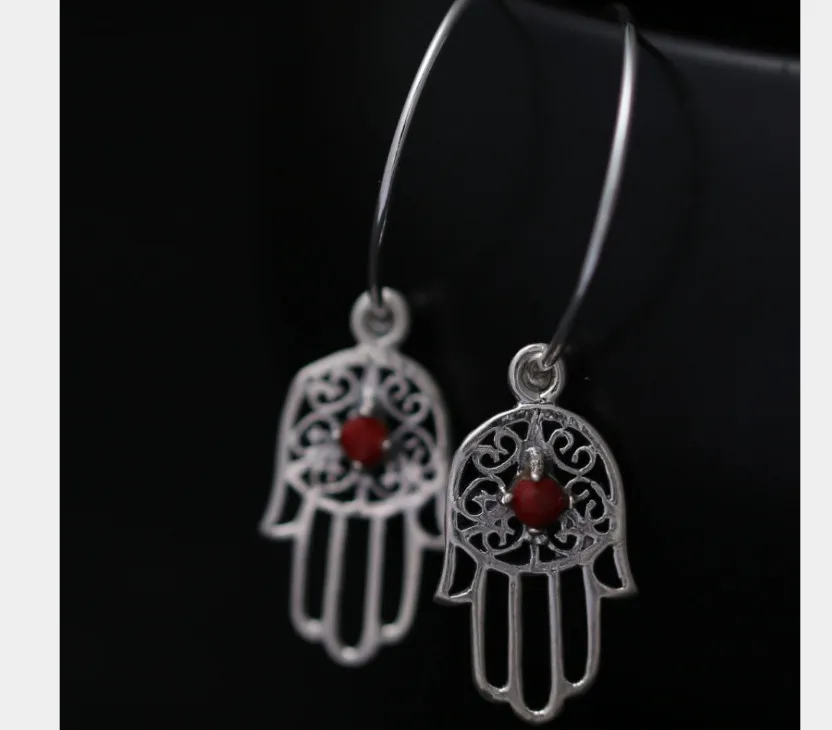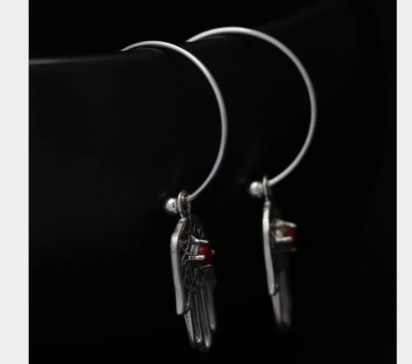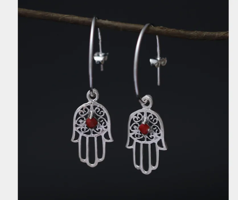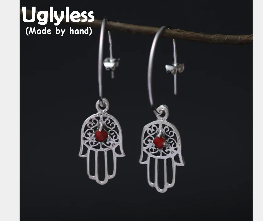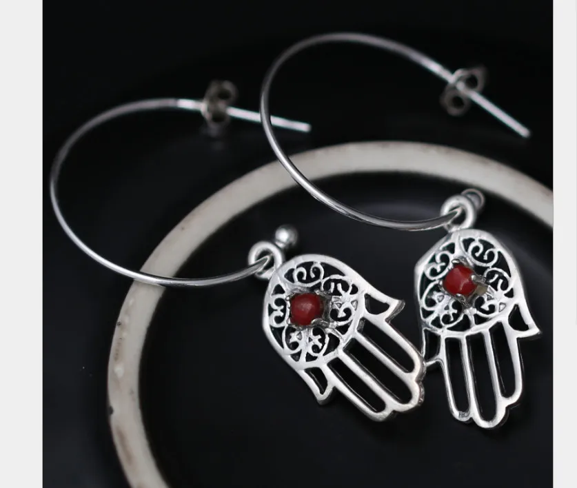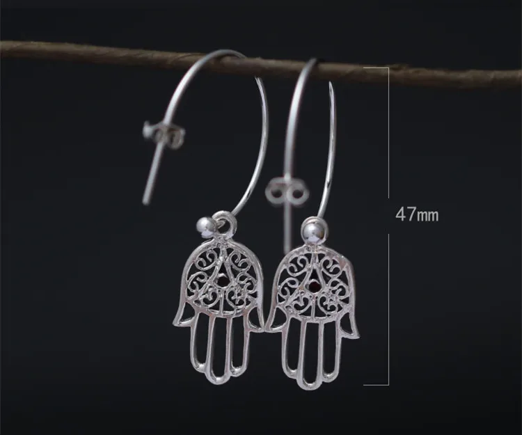 Real S 925 Sterling Silver Hands Earrings Hollow Vintage Hollow Brincos Natural Agate Balls Fine Jewelry Ethnic Bijoux