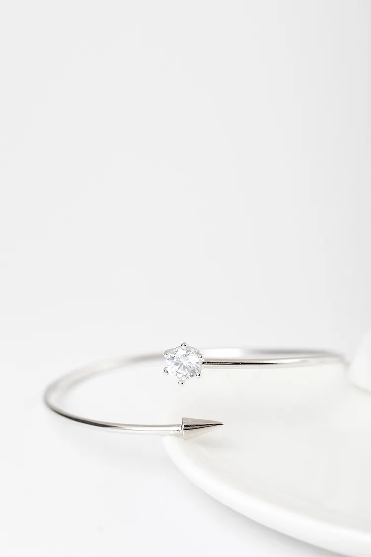 Real S 925 Sterling Silver Simple Fashion Zircon Bangles Korean Designer Co Arrow Jewelry Open Bangle Handmade Bijoux