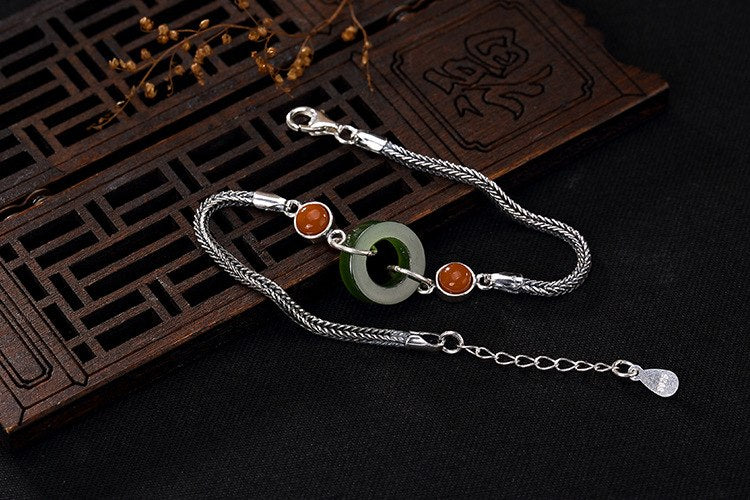 S 925 Sterling Silver Bracelets Natural Jasper Ring Charms Bracelet Women Agate Beads Fine Jewelry Snake Chains Bijoux