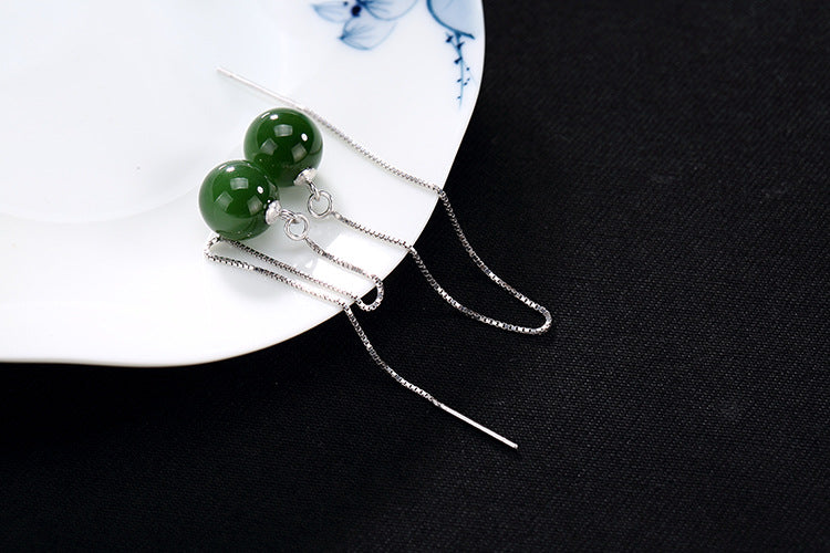 S 925 Sterling Silver Natural Jasper Women Beads Dangle Earrings Long Ear Line Jade Brincos Vintage Fine Jewelry Ethnic