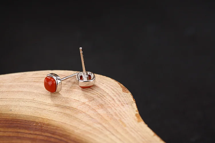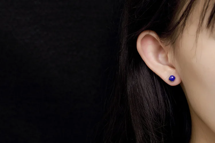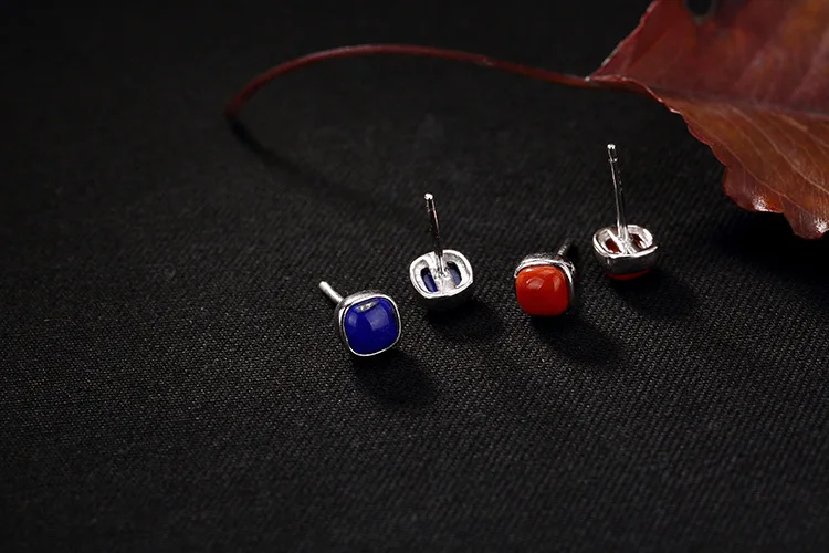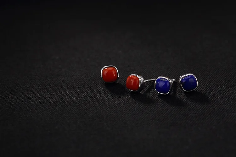 S 925 Sterling Silver Nature Lapis Stud Earrings Agate Studs Women Ethnic Vintage Square Brincos Handmade Fine Jewelry