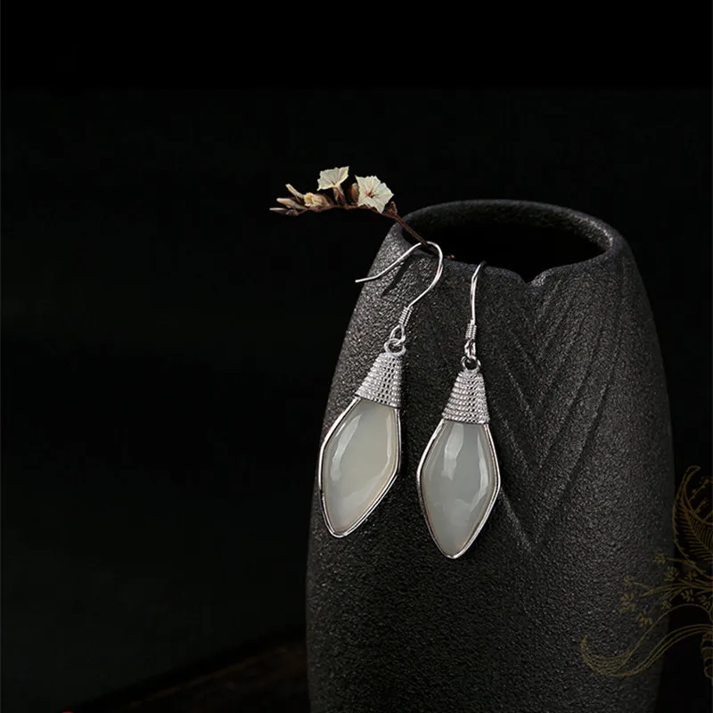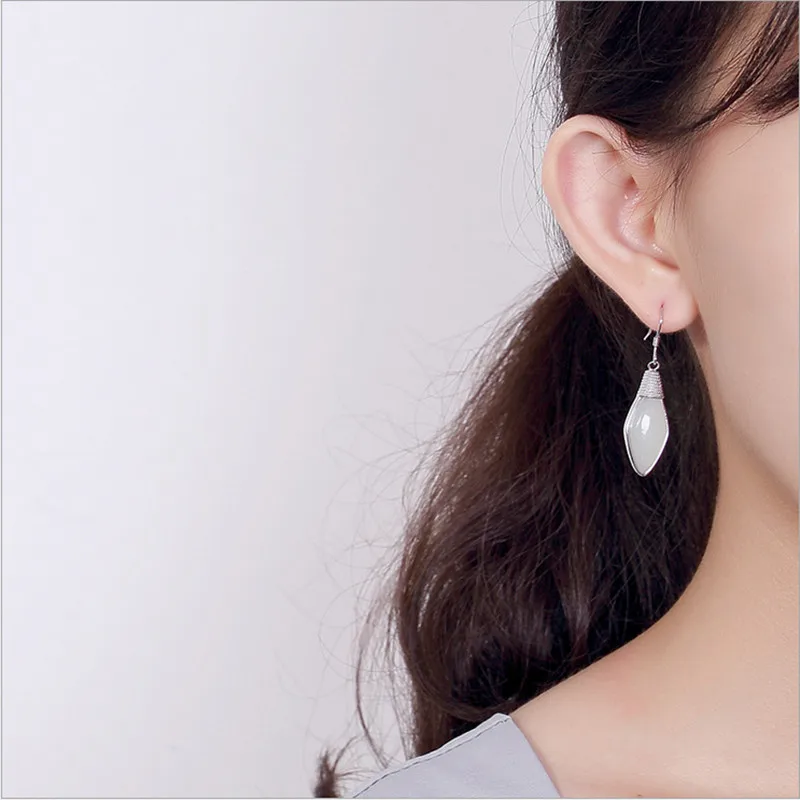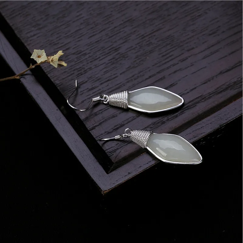 S 925 Sterling Silver Rhombus Earrings Natural Jade Dangle Earrings Simple Fashion Geometric Gemstone Jewelry Brincos