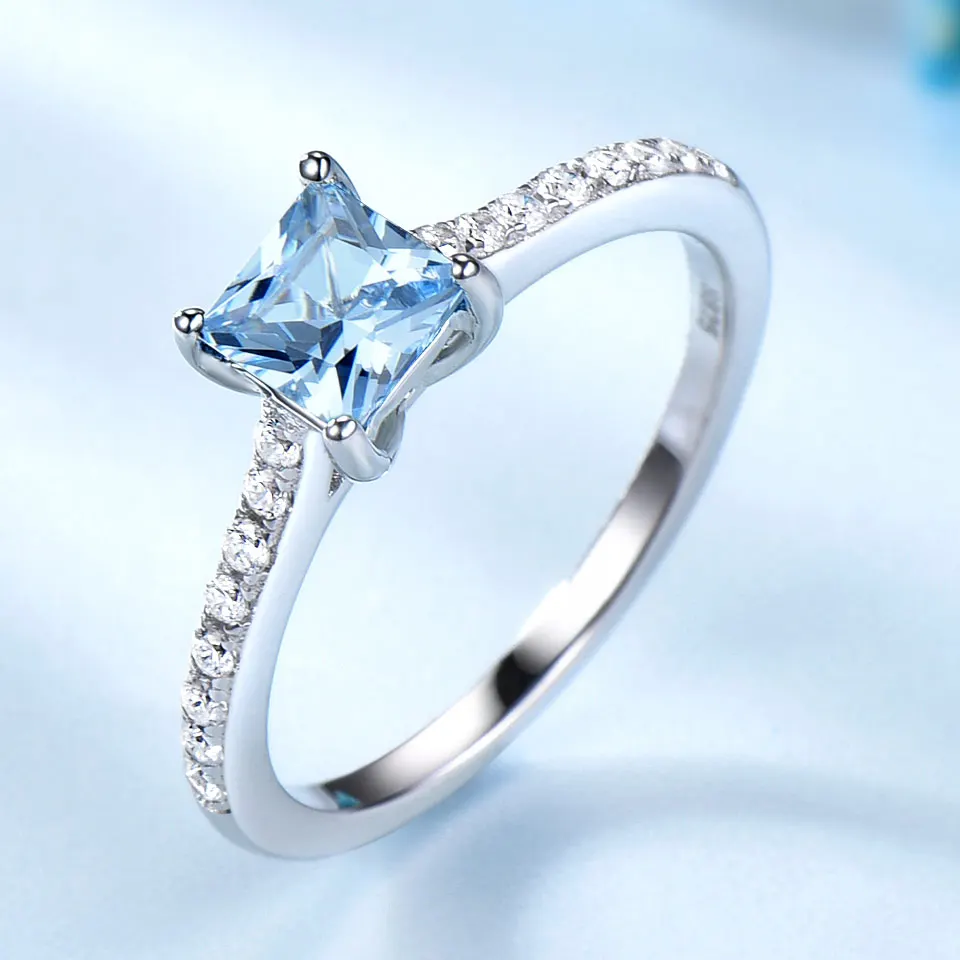 Sky Blue Topaz Rings For Women Real Solid 925 Sterling Silver Korean Fashion Ring Birthstone Girl Gift Wholesale Jewelry