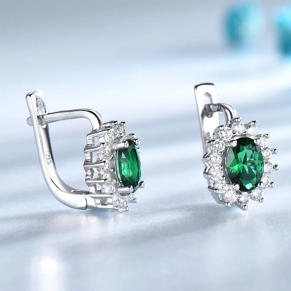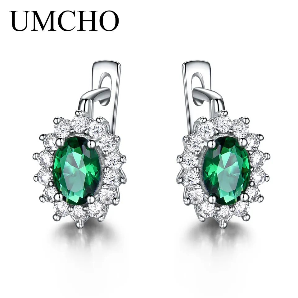 925 Sterling Silver Earrings Gemstone Created Emerald Clip Earrings For Female Birthd Anniversary Gifts Fine Jewelry