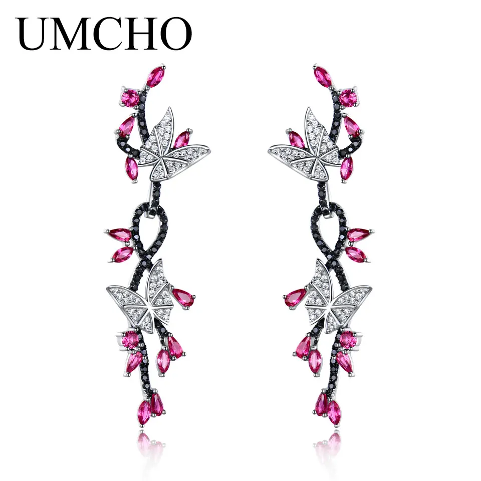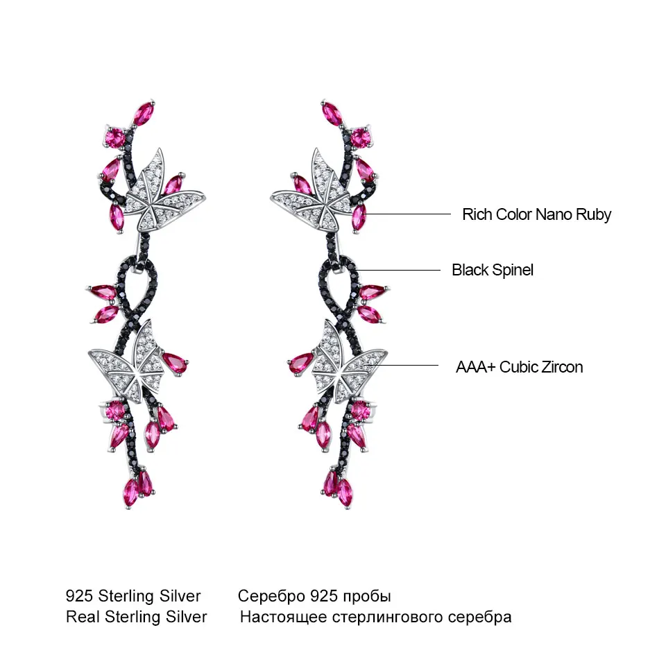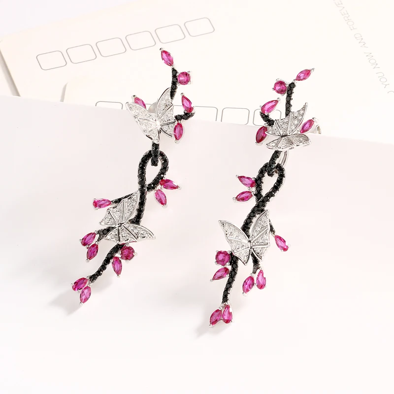 925 Sterling Silver Butterfly Natural Gemstone Black Spinel Ruby Drop Earrings Romantic Earrings For Women Fine Jewelry