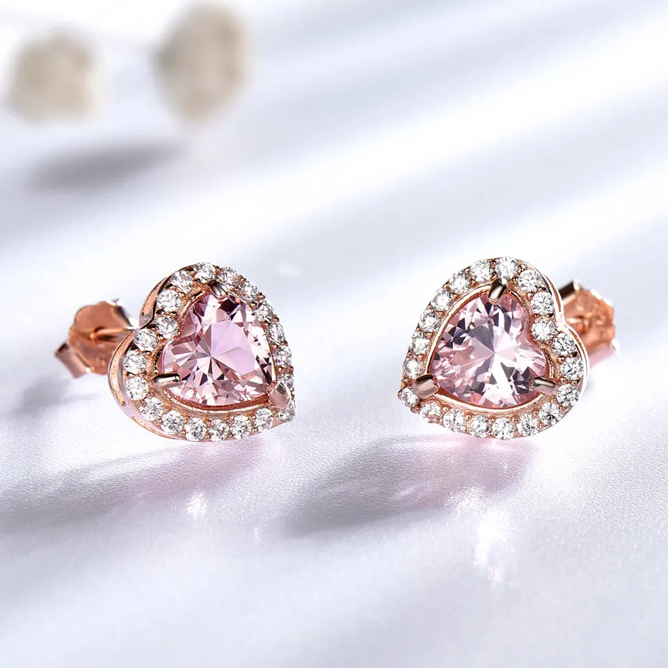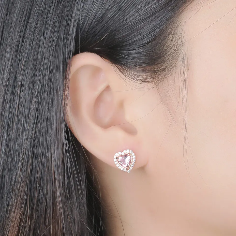 925 Sterling Silver Jewelry Created Heart Morganite Silver Stud Earrings Sweet Romantic Style For Lover Anniversary Gifts