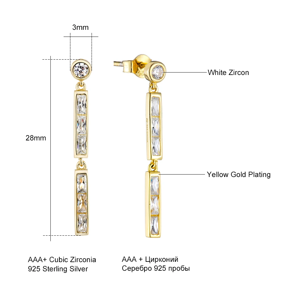 925 Sterling Silver Statement Drop Tassel Earrings For Women Bridal Dangle Earrings Yellow Gold Color Fine Jewelry