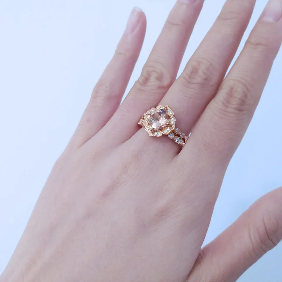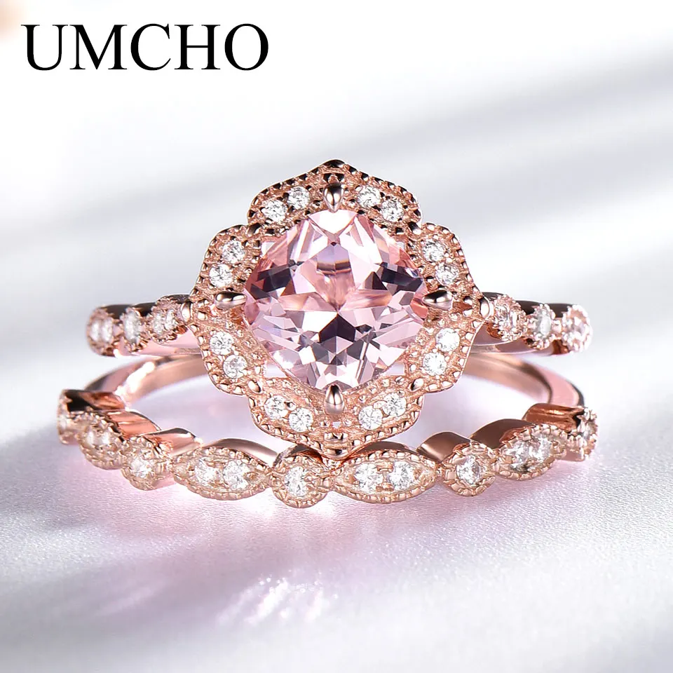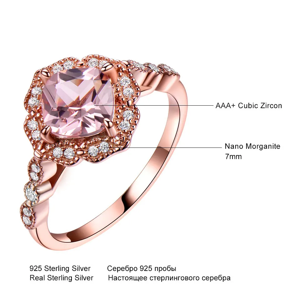 Created Nano Morganite 925 Sterling Silver Rings Charm Flower Double Rings For Women Anniversary Gift Fine Jewelry