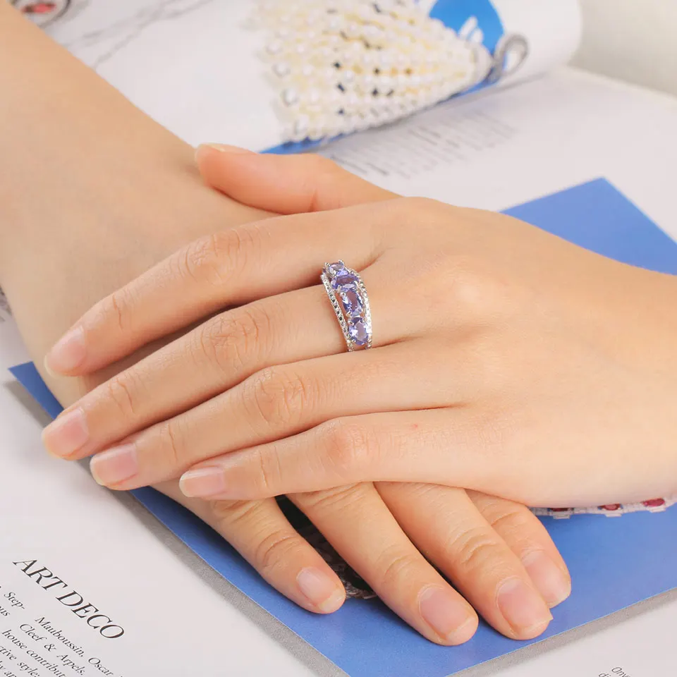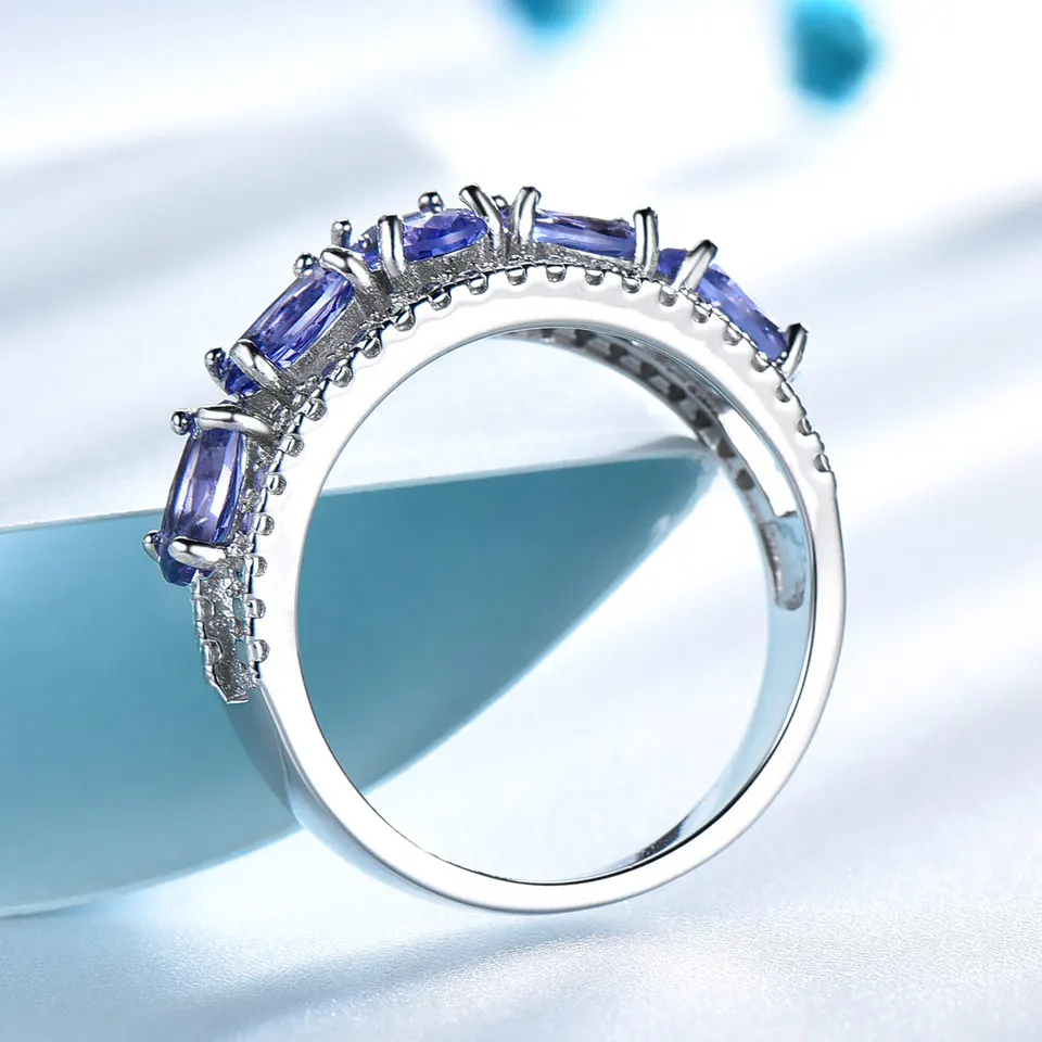 Created Oval Tanzanite Colorful Gemstone Jewelry 925 Sterling Silver Rings For Female Anniversary Gifts Fine Jewelry New