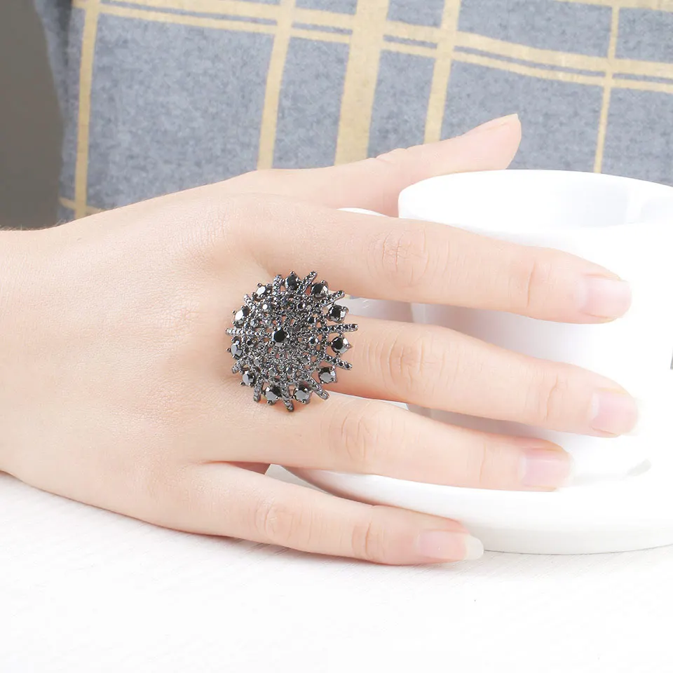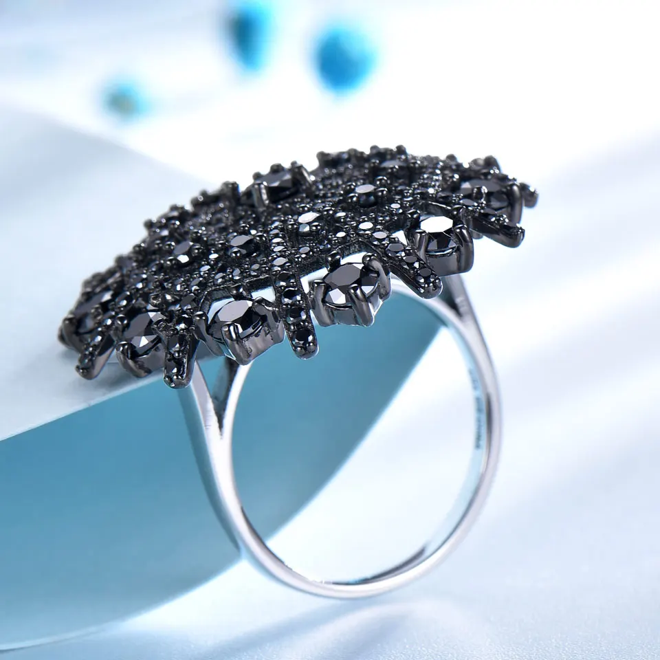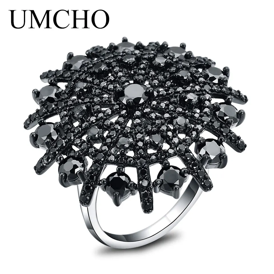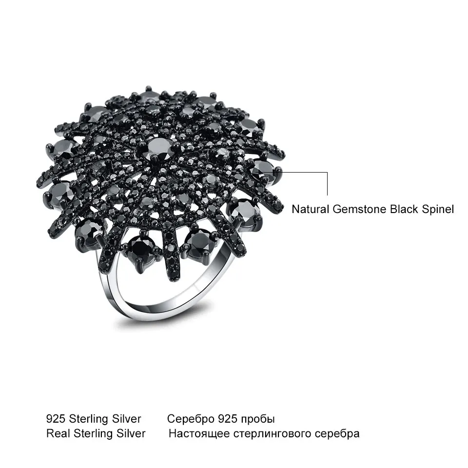Natural Gemstone Natural Black Spinel Ring Solid 925 Sterling Silver Female Cluster Rings For Women Round Jewelry Gift