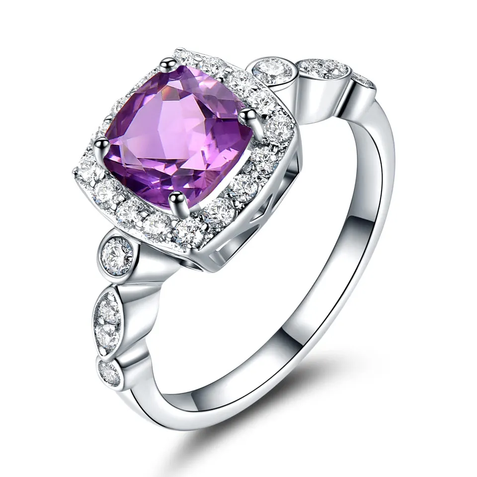 Genuine 925 Sterling Silver Birthstone Ring Created Nano Topaz Garnet Amethyst CZ Rings Engagement For Women Fine Jewelry