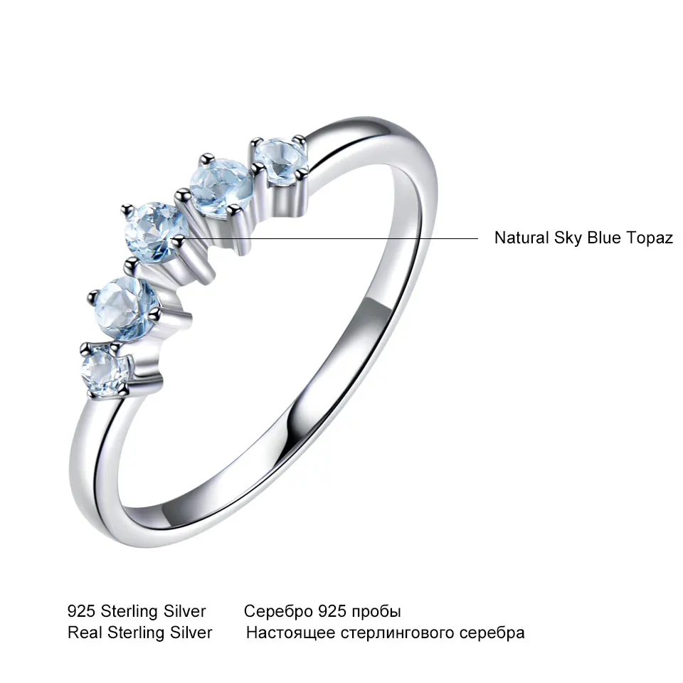 Genuine Natural Sky Blue Topaz Ring For Women 925 Sterling Silver Engagement Wedding Stacking Ring Fine Jewelry New Gift