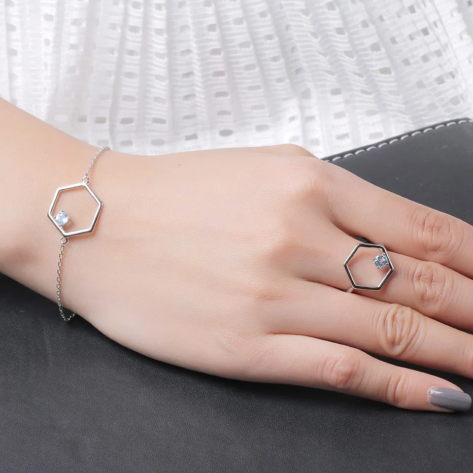 Natural Blue Topaz Jewelry Set925 Sterling Silver Necklace Ring Earrings Bracelet For Women Fine Jewelry