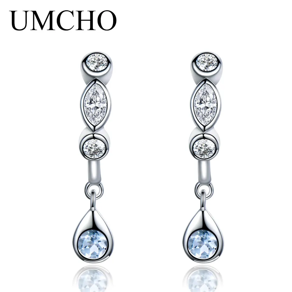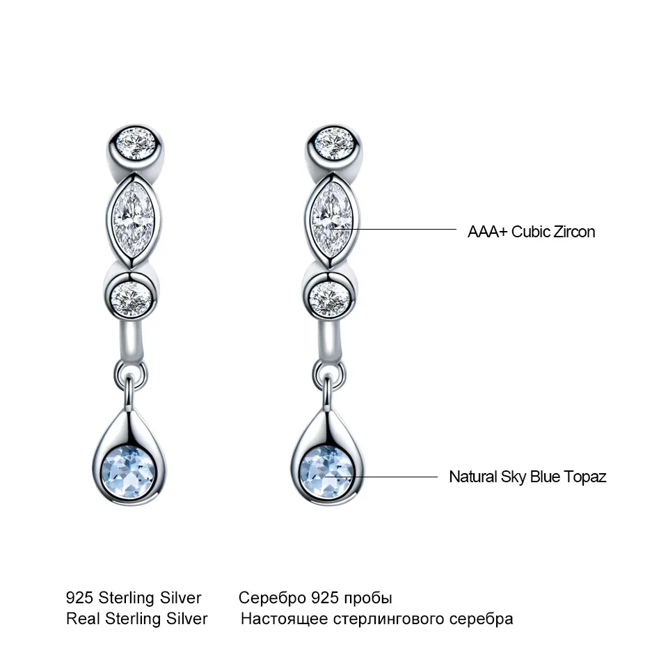 Natural Sky Blue Topaz Aquamarine Drop Earrings 925 Sterling Silver Earrings Jewelry Fine Earrings For Women Gift