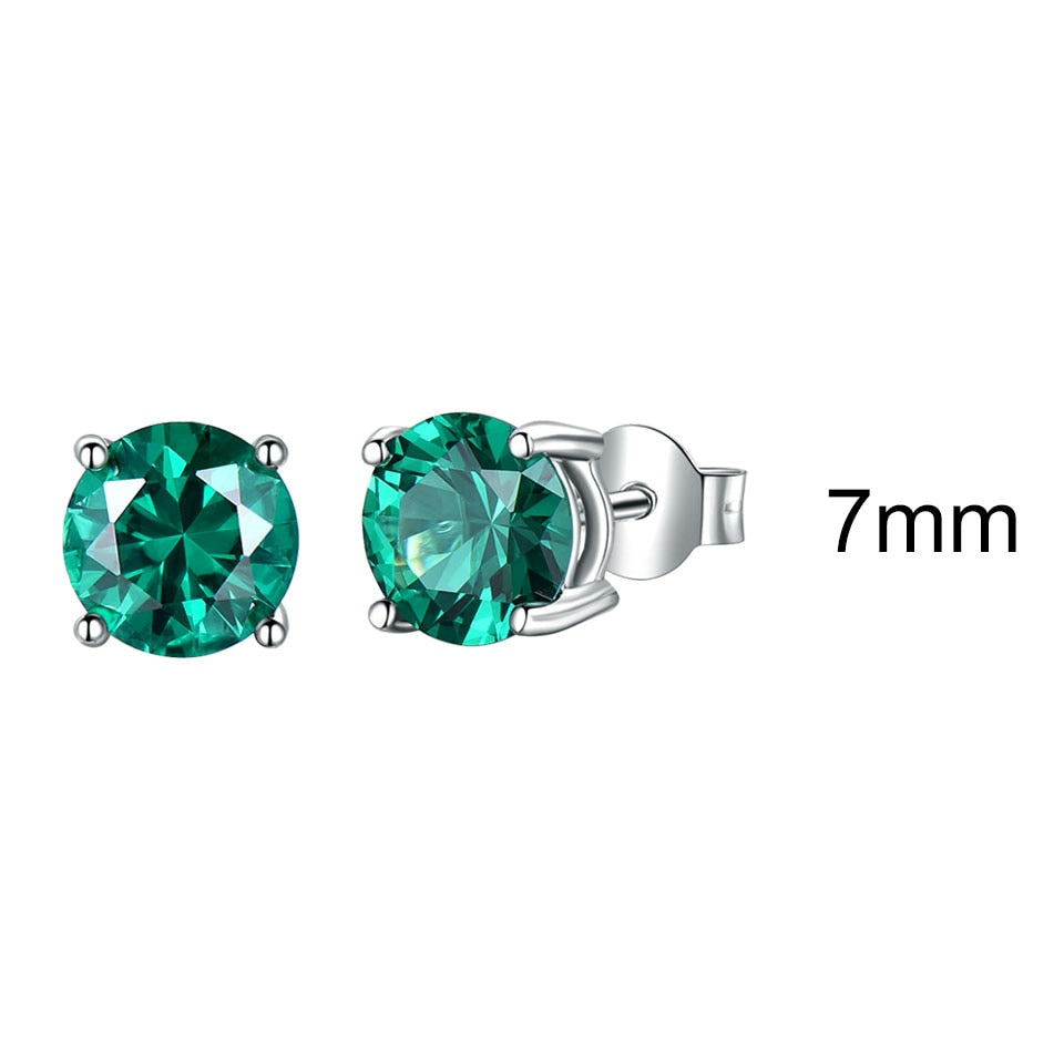 Real 925 Sterling Silver Jewelry Created Russian Emerald Stud Earrings Elegant Anniversary For Women Birthd Gifts