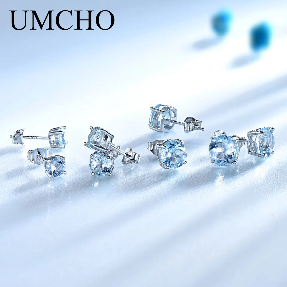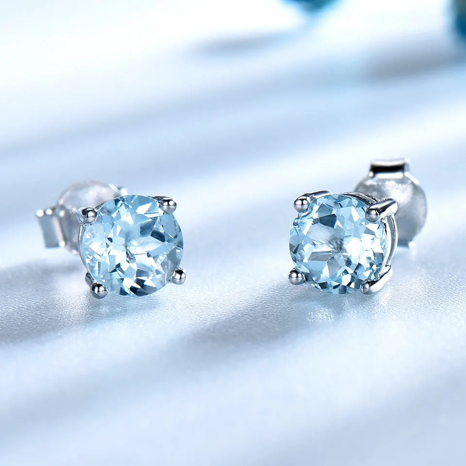 Real 925 Sterling Silver Jewelry Created Russian Sky Blue Topaz Stud Earrings Elegant Anniversary For Women Birthd Gifts