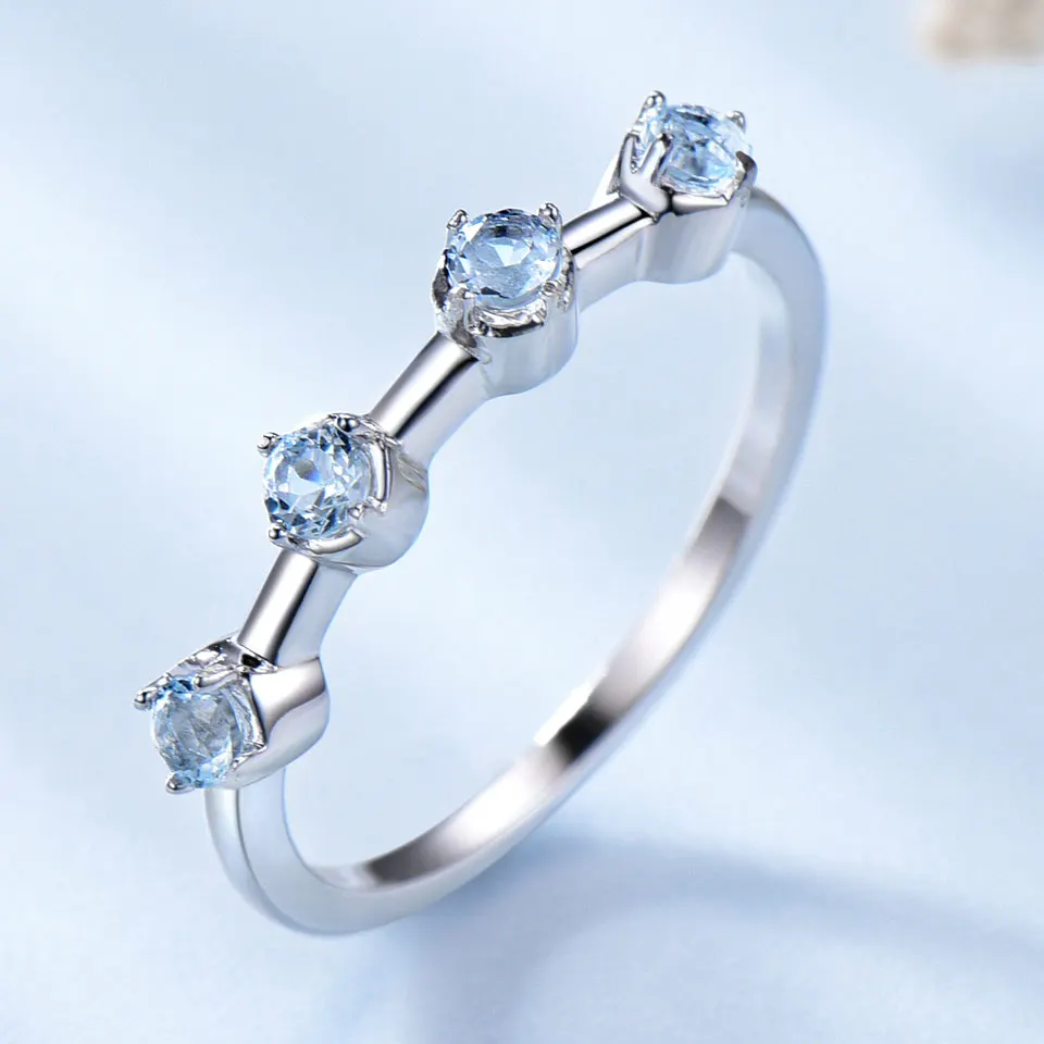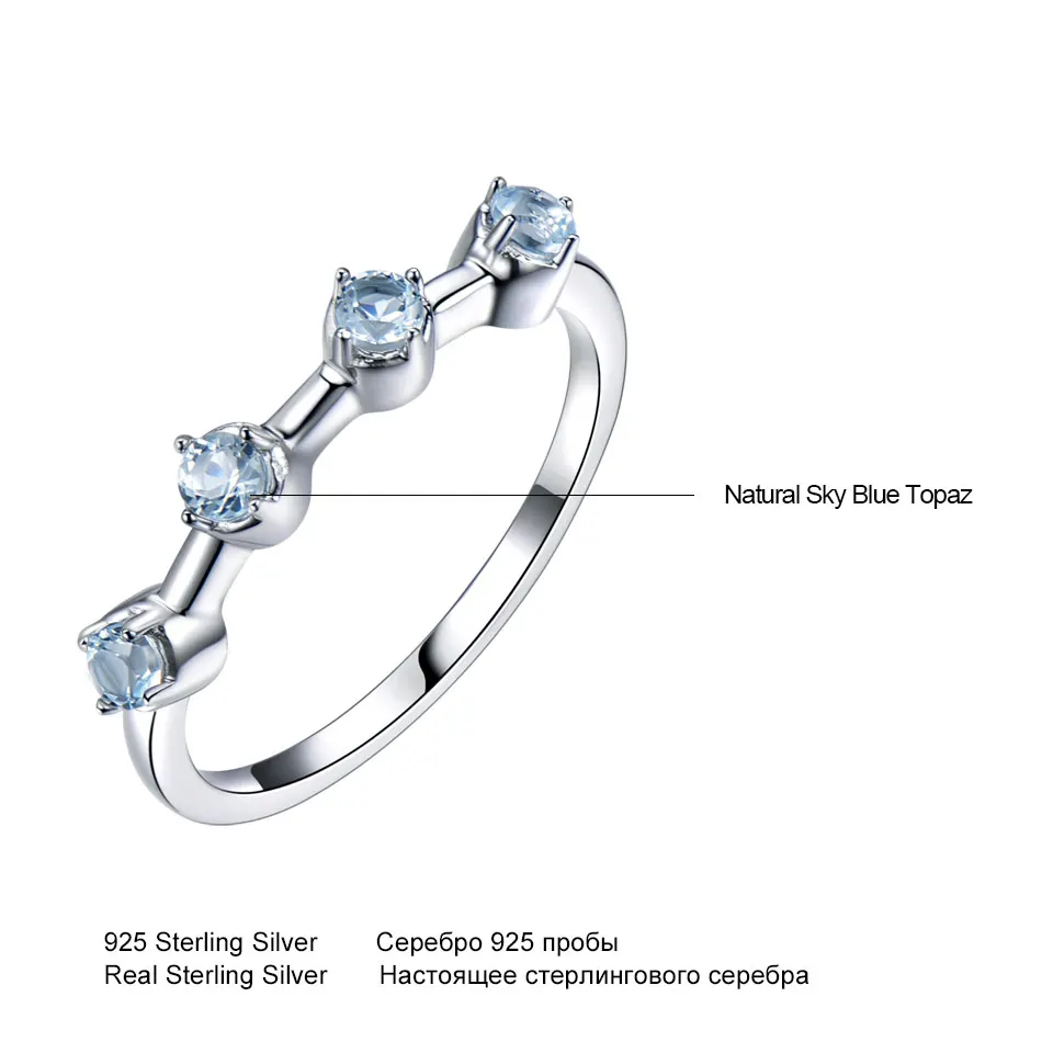 Real Natural Sky Blue Topaz Solid 925 Sterling Silver Ring Colorful Gemstones for Women Romantic Elegant Gift Fine Jewelry
