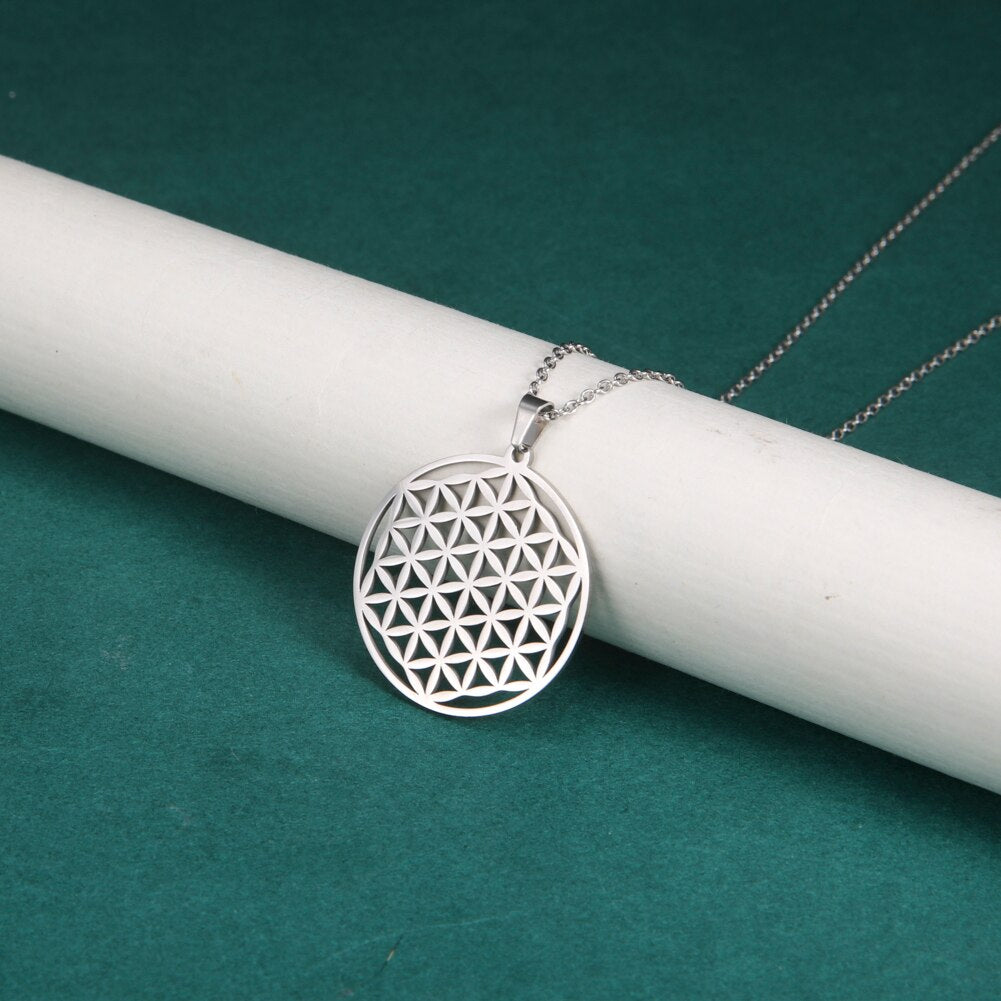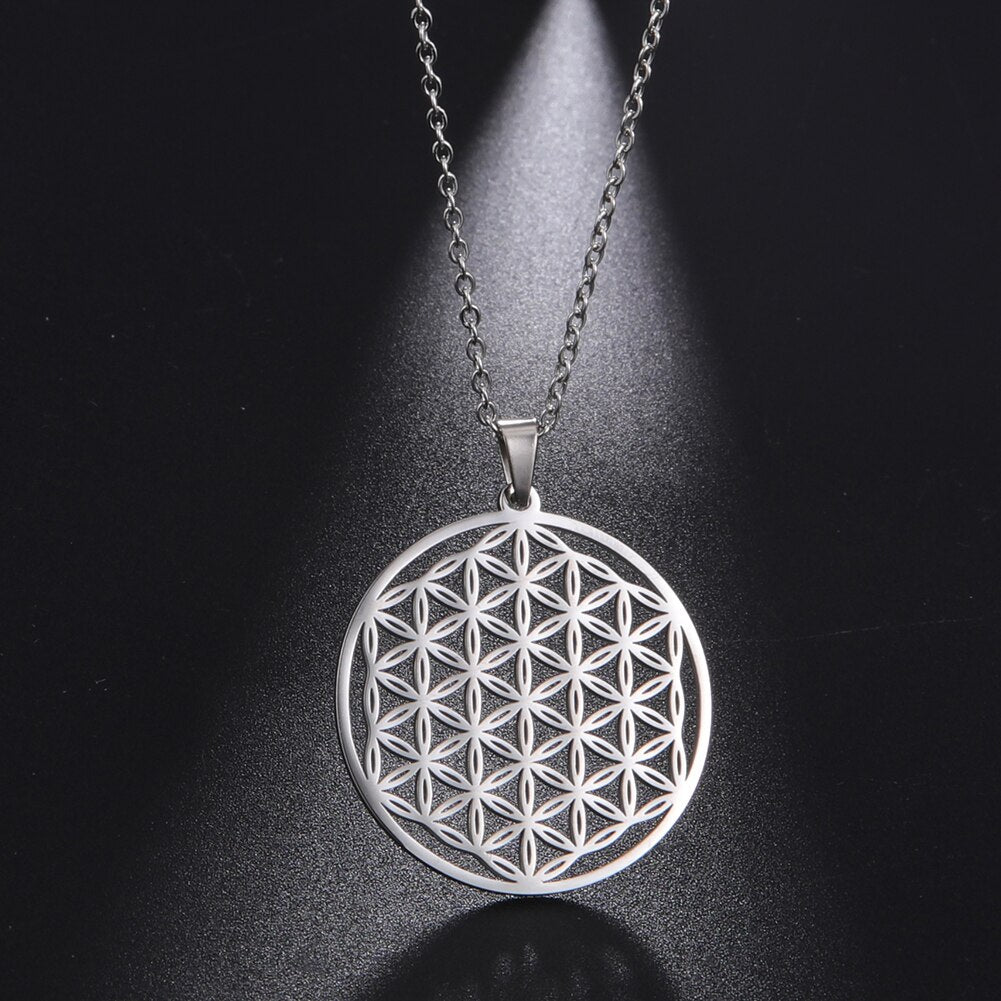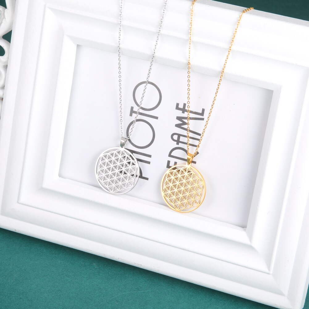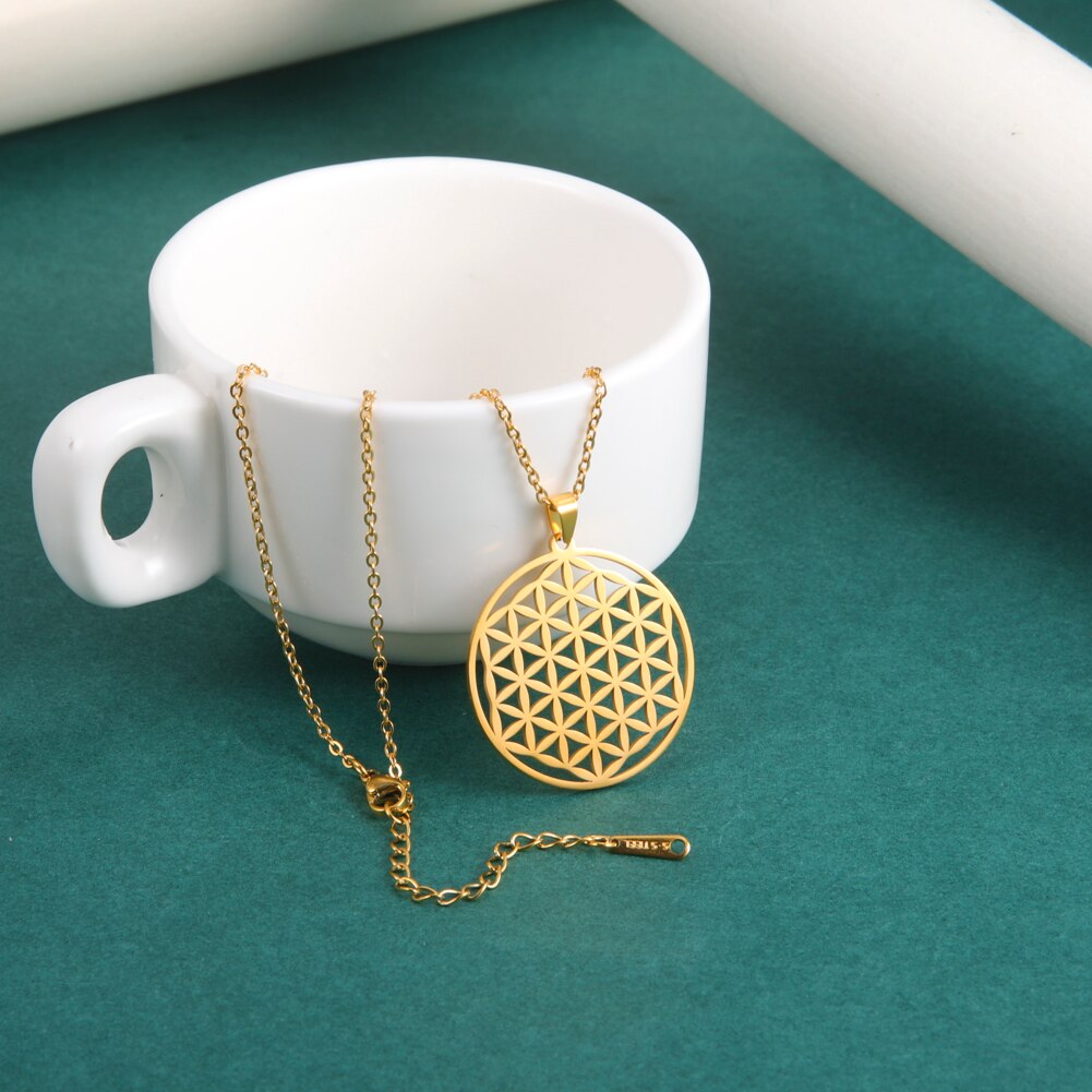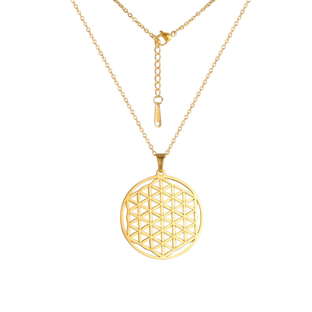 Unift-collar de flor de la vida para mujer y hombre, joyería de acero inoxidable, colgante, Color dorado, hueco, 2021