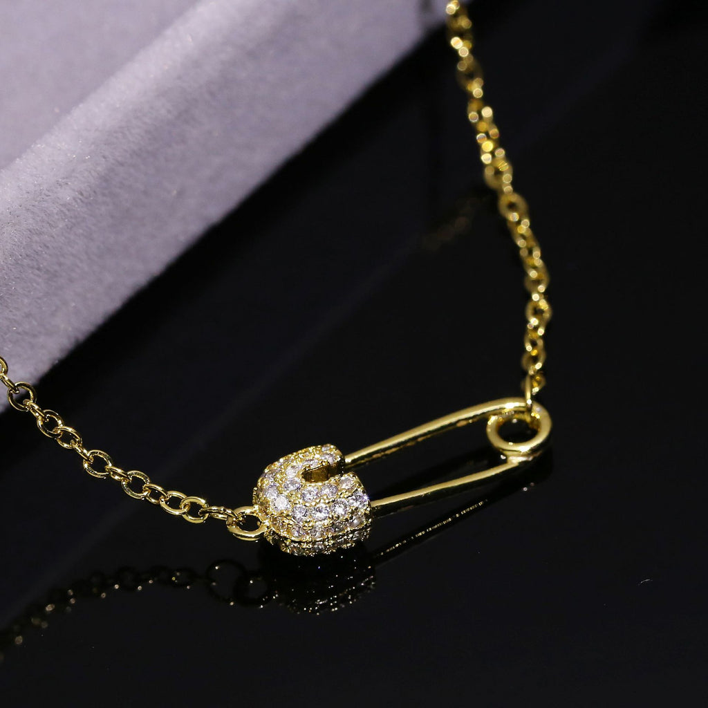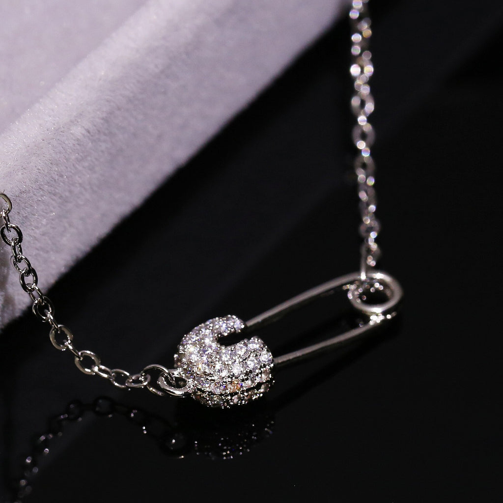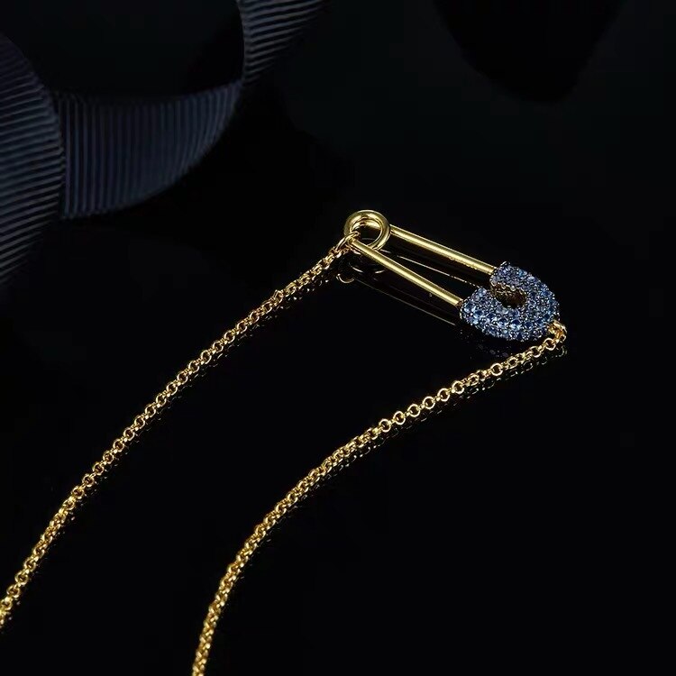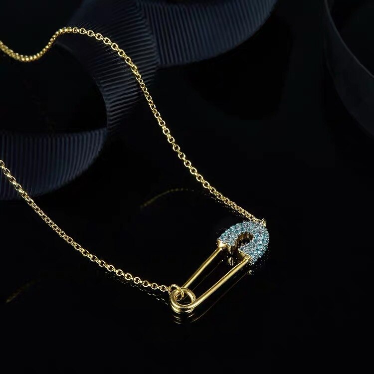 Unique Paper clip Safety pin Pendent Necklace Bling Tiny CZ Punk Collar Necklace Jewelry Accessoris