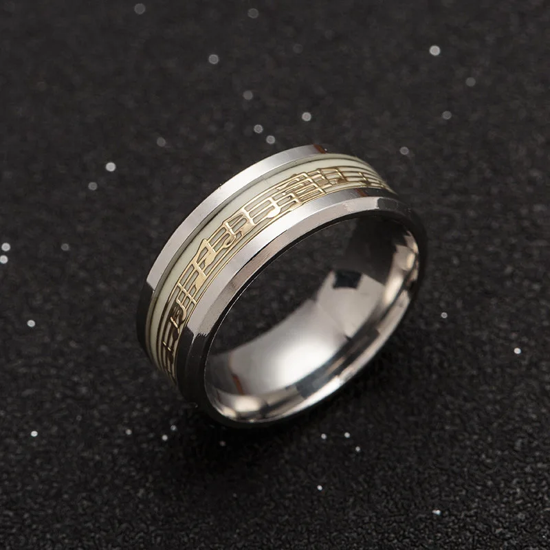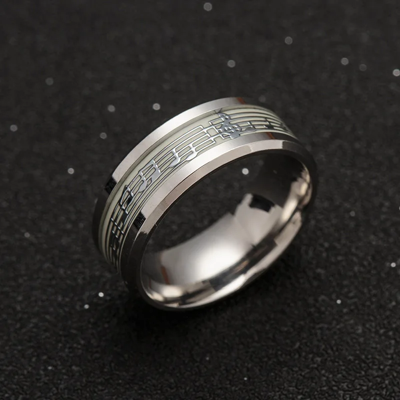 US Size 6-13 New Design Unique Unisex Biker Rock Style Ring Party Glow In The Dark Luminous Surgical Steel Music Note Mens Rings