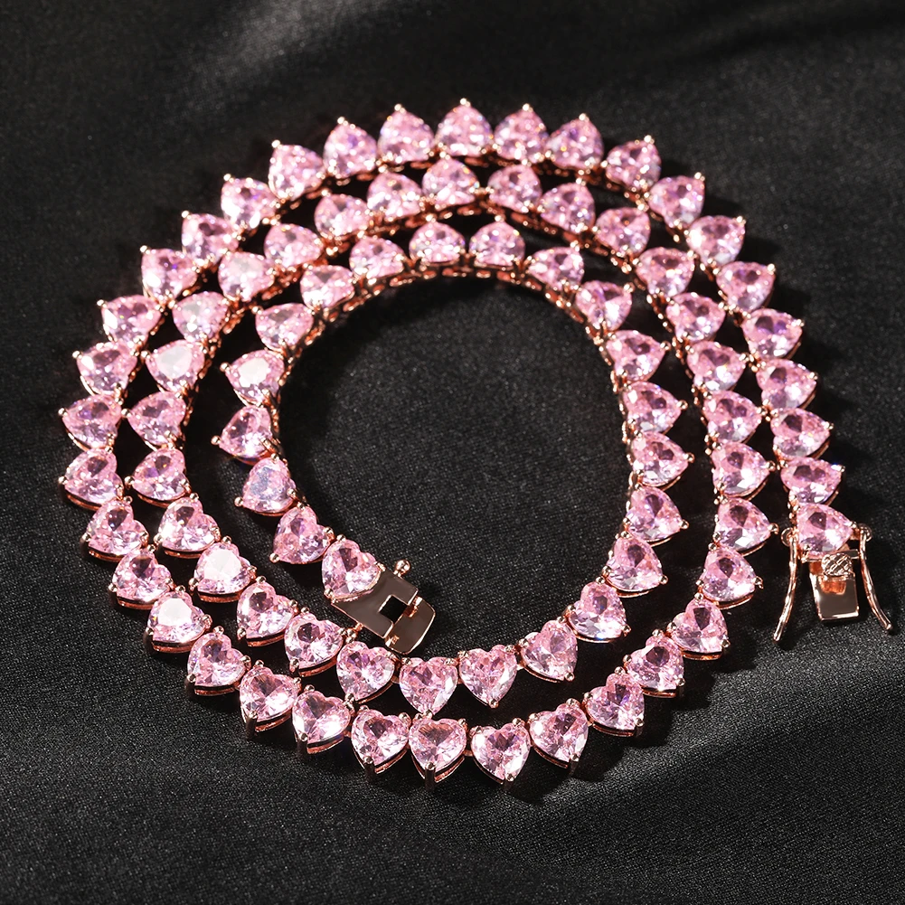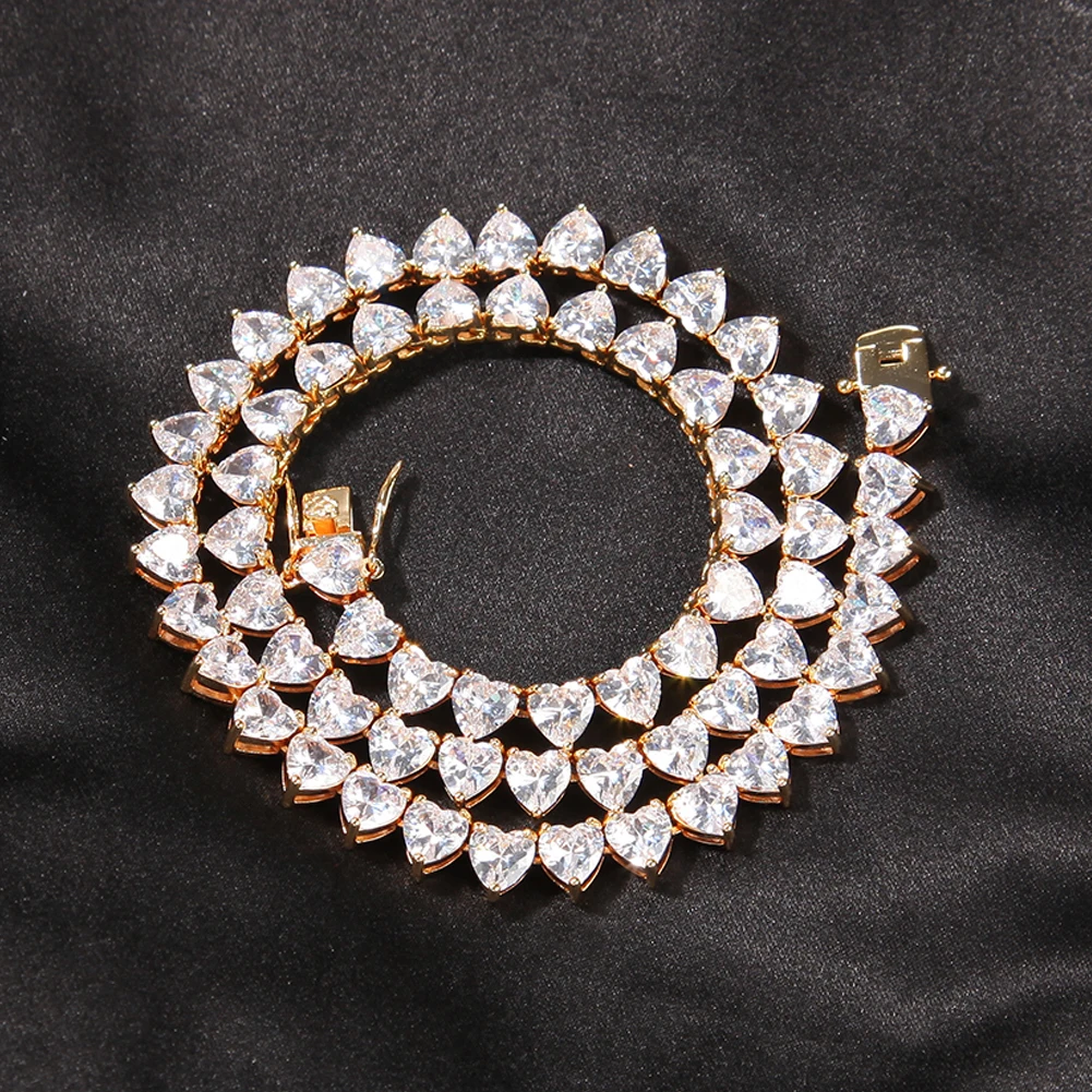 Uwin Heart Tennis Chain 6mm Choker Micro Paved Iced Out Cubic Zirconia Bling Bling Charm Vintage Short Necklace