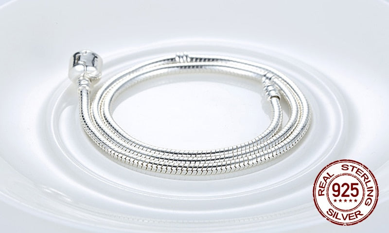Vecalon Original 925 Sterling Silver Snake Chain Necklace Secure Ball Clasp Beads Charms Necklace For Women Wedding Gift Jewelry