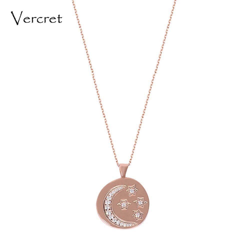 CZ star moon pendent necklace silver 925 jewelry rose gold chain moon necklace for women party gift