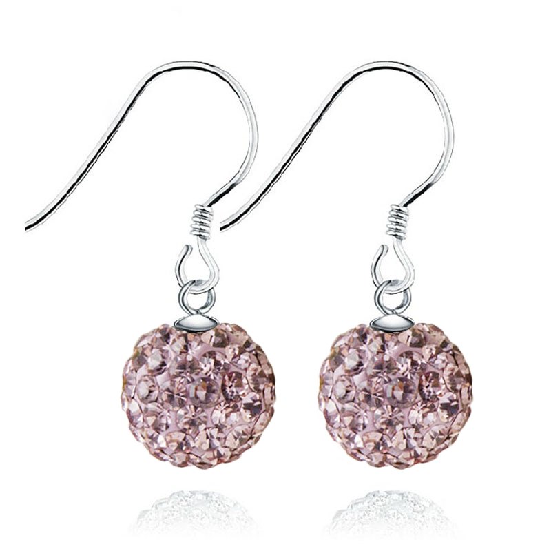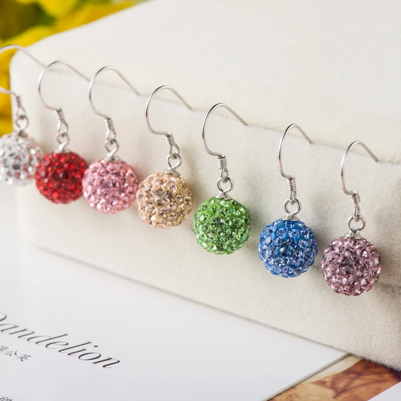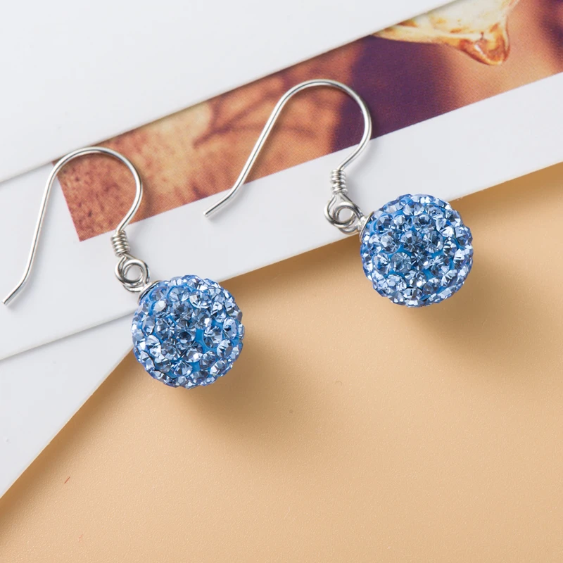 Ball Crystal Clip On Drop Earrings For Women Sterling Silver Party Charm Dangle Earrings Fashion Jewelry 7 Colors