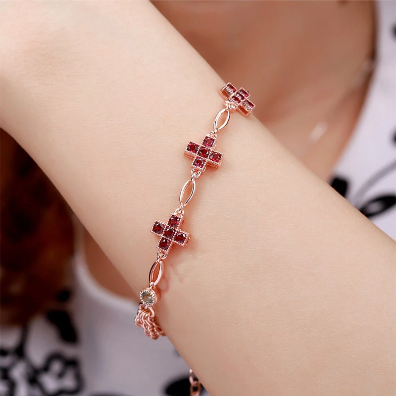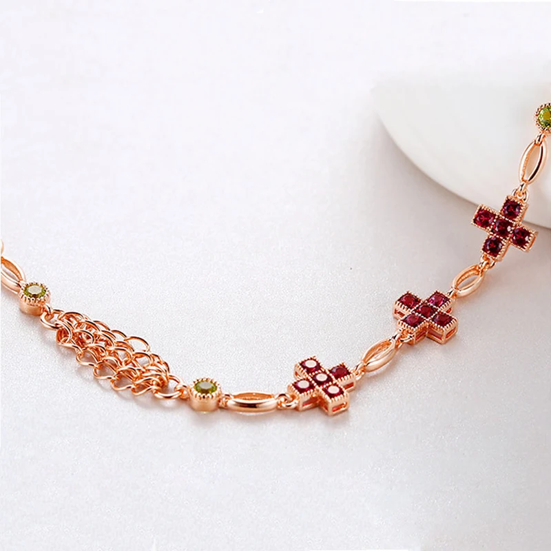 Nature Stone Garnet Peridot 925 Sterling Silver Bracelet Chain Link Adjustable Bracelets For Ladies Fine Jewelry pulseira