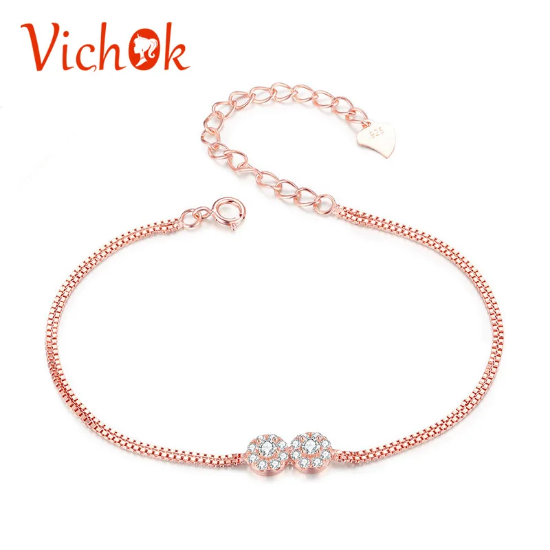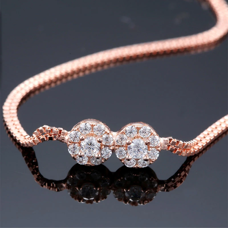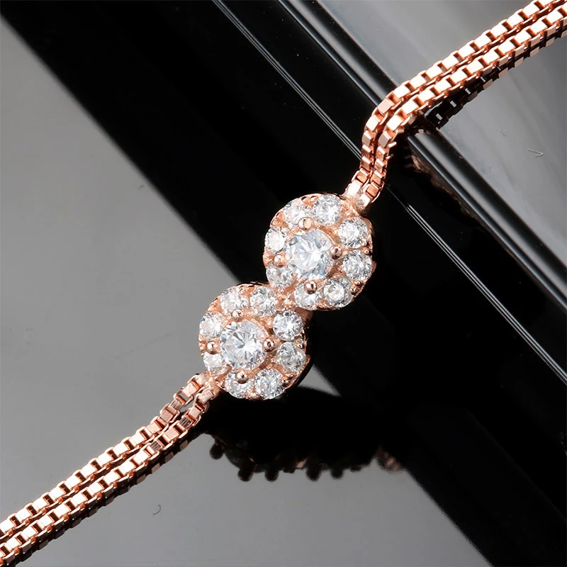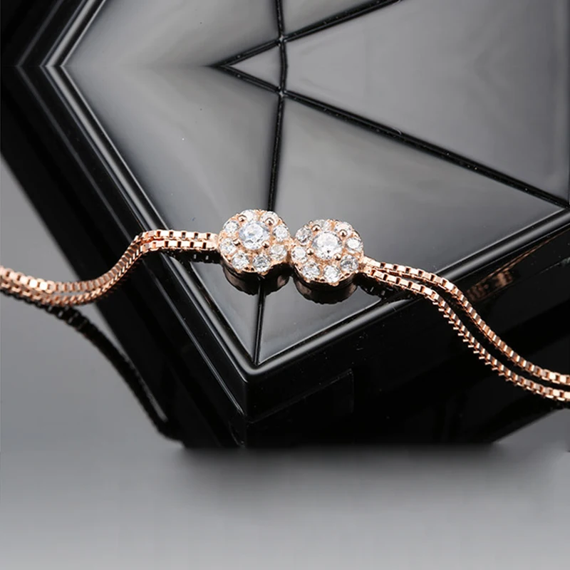 Genuine 925 Sterling Silver Bracelet Double Flower Rose Gold Color Bracelets For Women Luxury Fine Jewelry pulseira