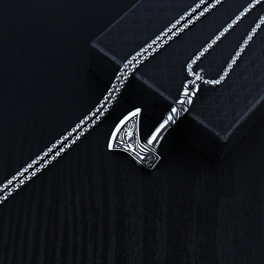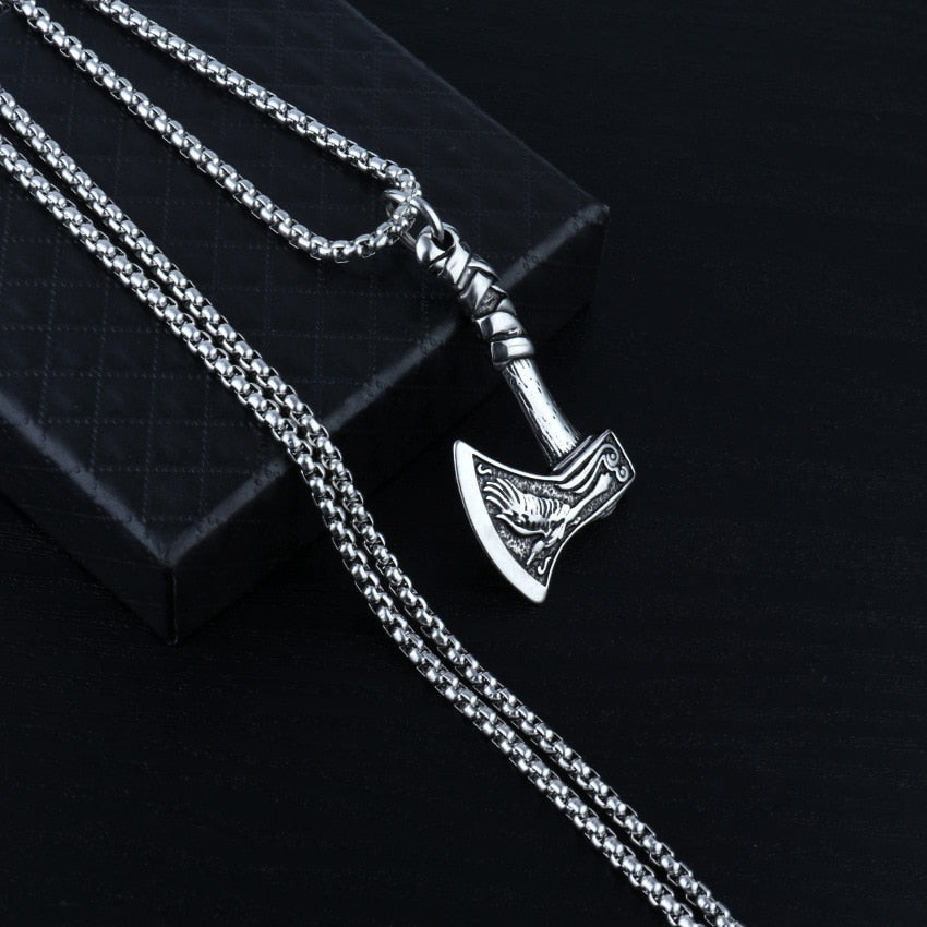 Viking Axe Chain Pendant Necklace For Men Male Neck BFF Jewelry Gift