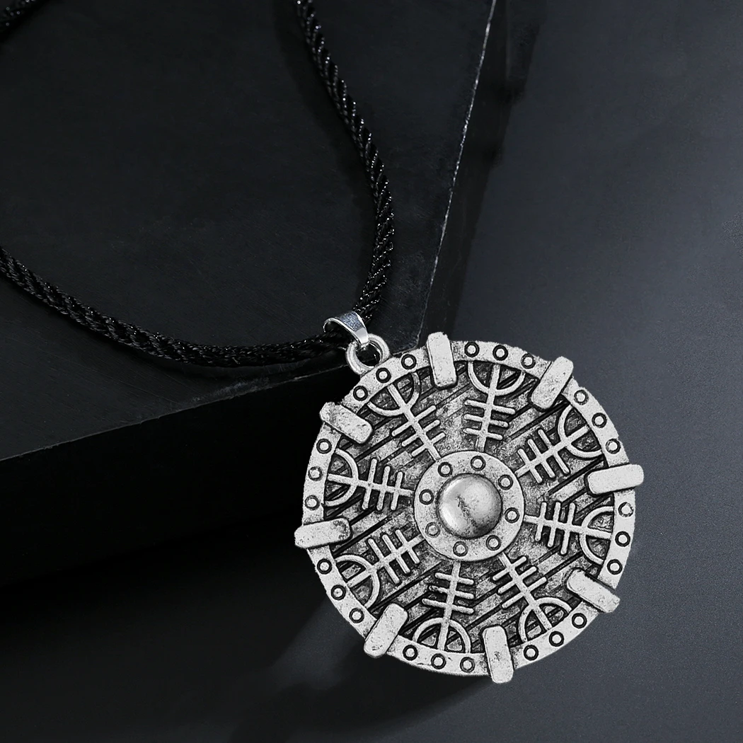Viking Helm Of Awe Shield Pendant Necklace Chokers Vintage Men Jewelry Slavic Amulet Celtic Necklaces Birthday Gift