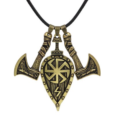 Viking Shield Necklace Pendant Slavic Amulet Sword Axe Shield Rune Pendant Viking Pirate Jewelry Talisman Necklace For Women Men